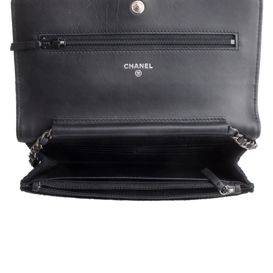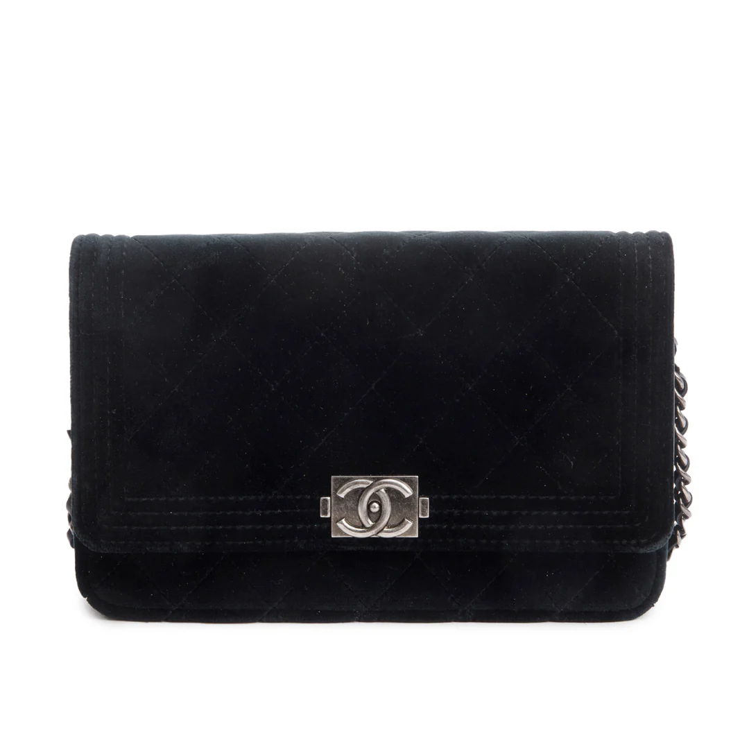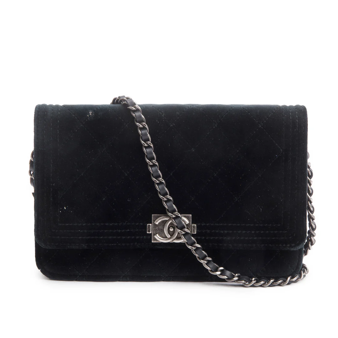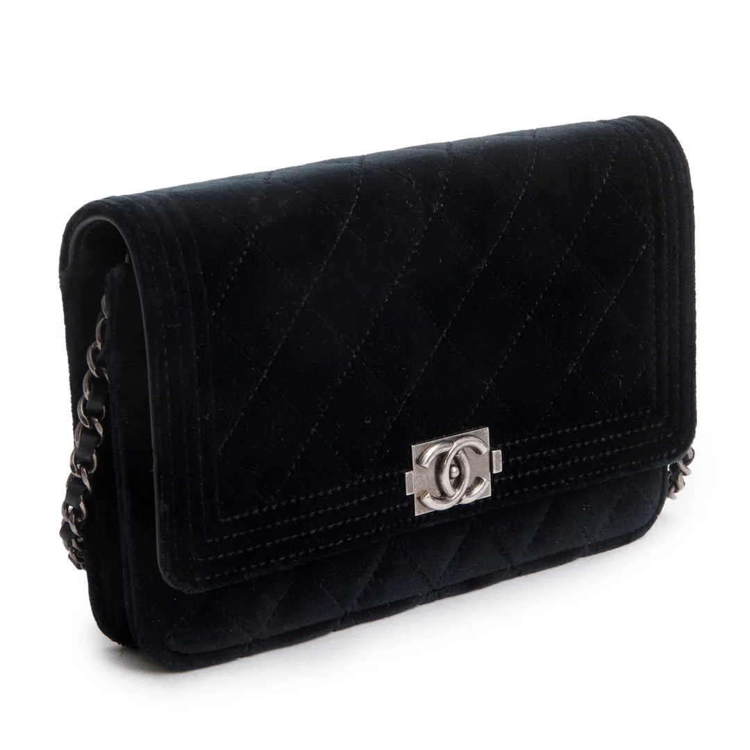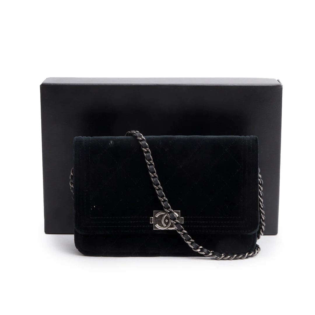 Black Quilted Velvet Boy Wallet on Chain w/ Box & Authenticity Card