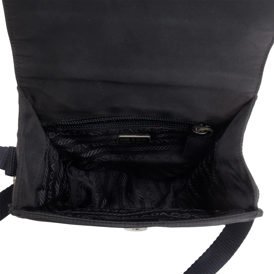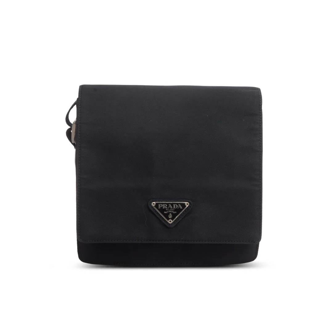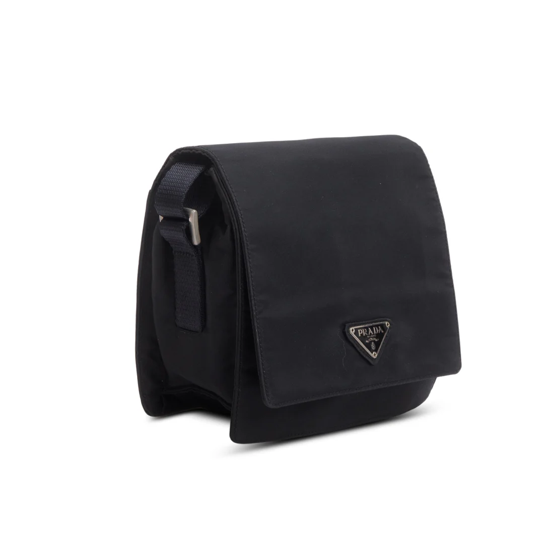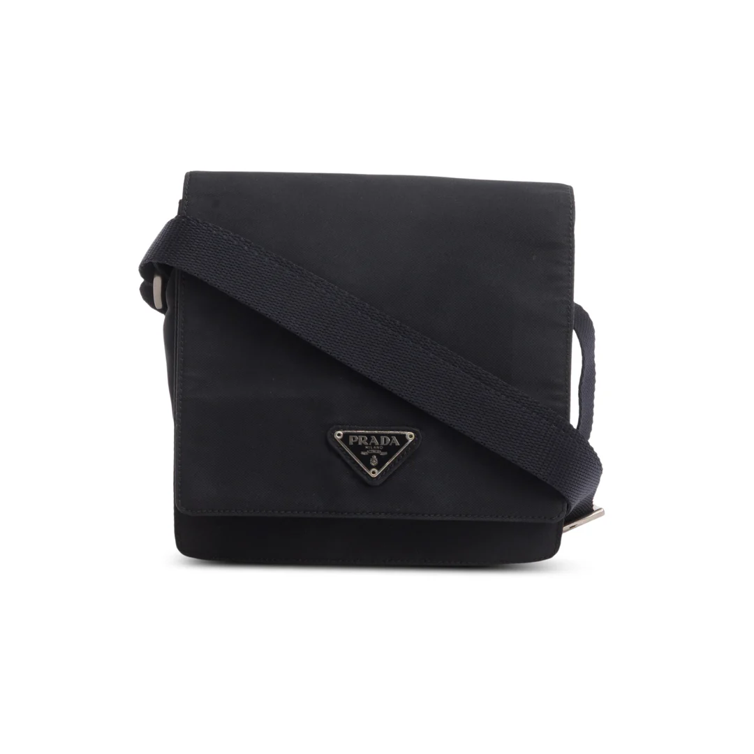 Black Tessuto Nylon Saffiano Crossbody Bag