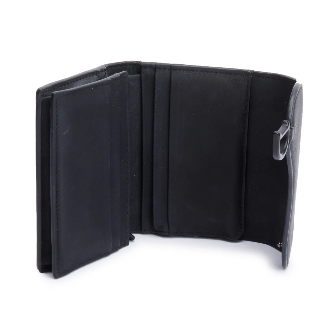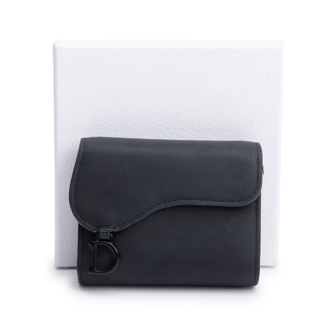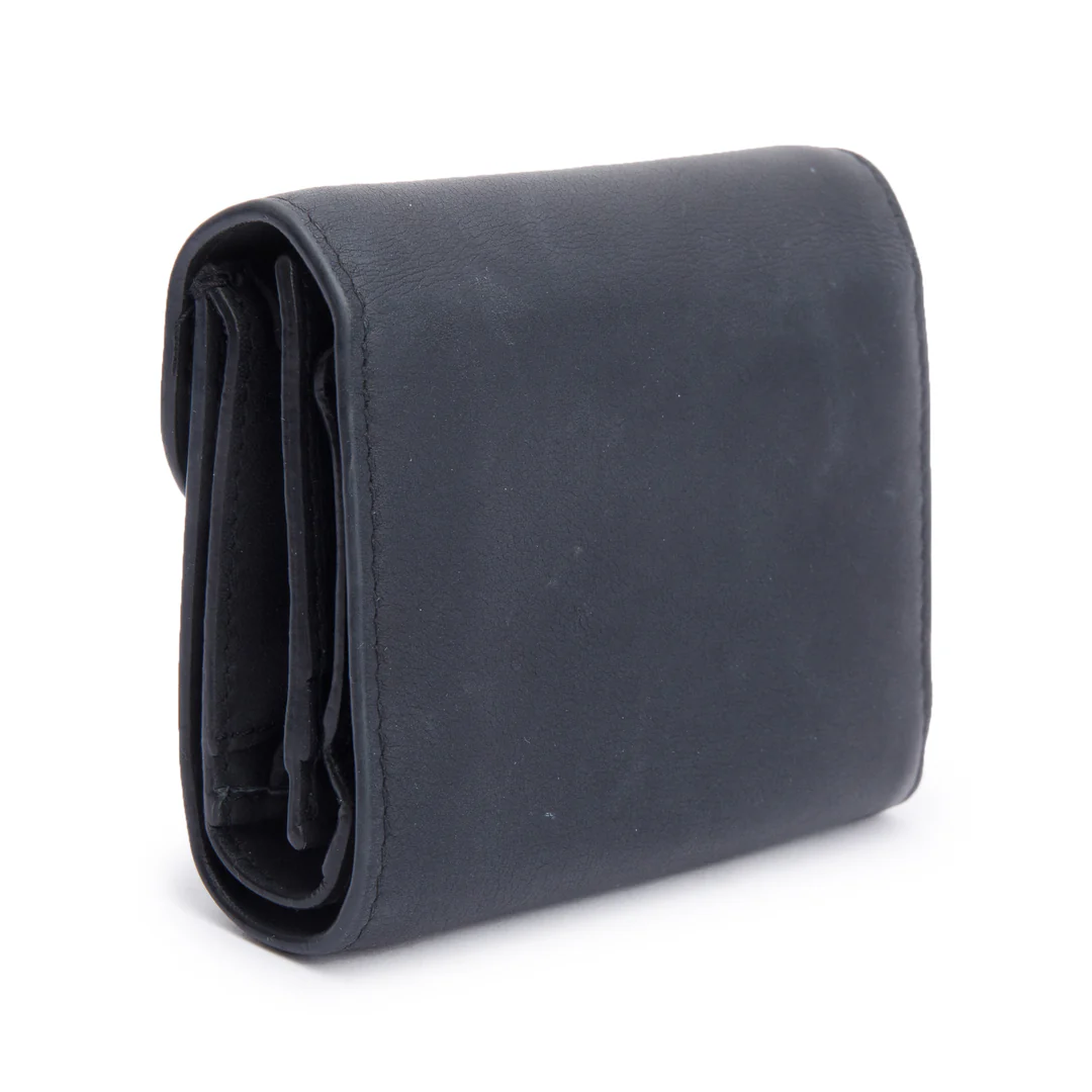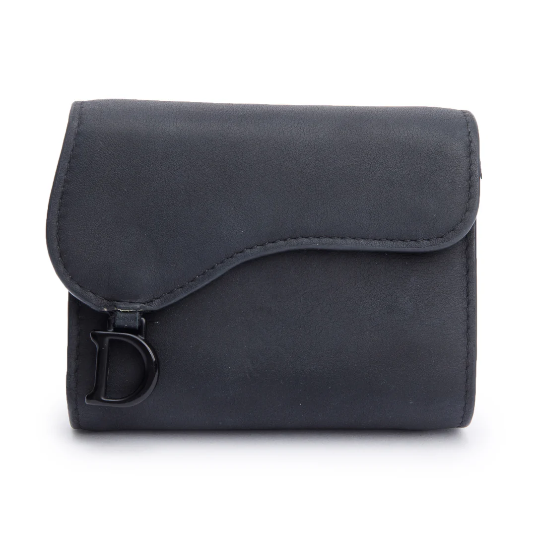 Black Ultra Matte Leather Saddle Lotus Wallet w/ Box