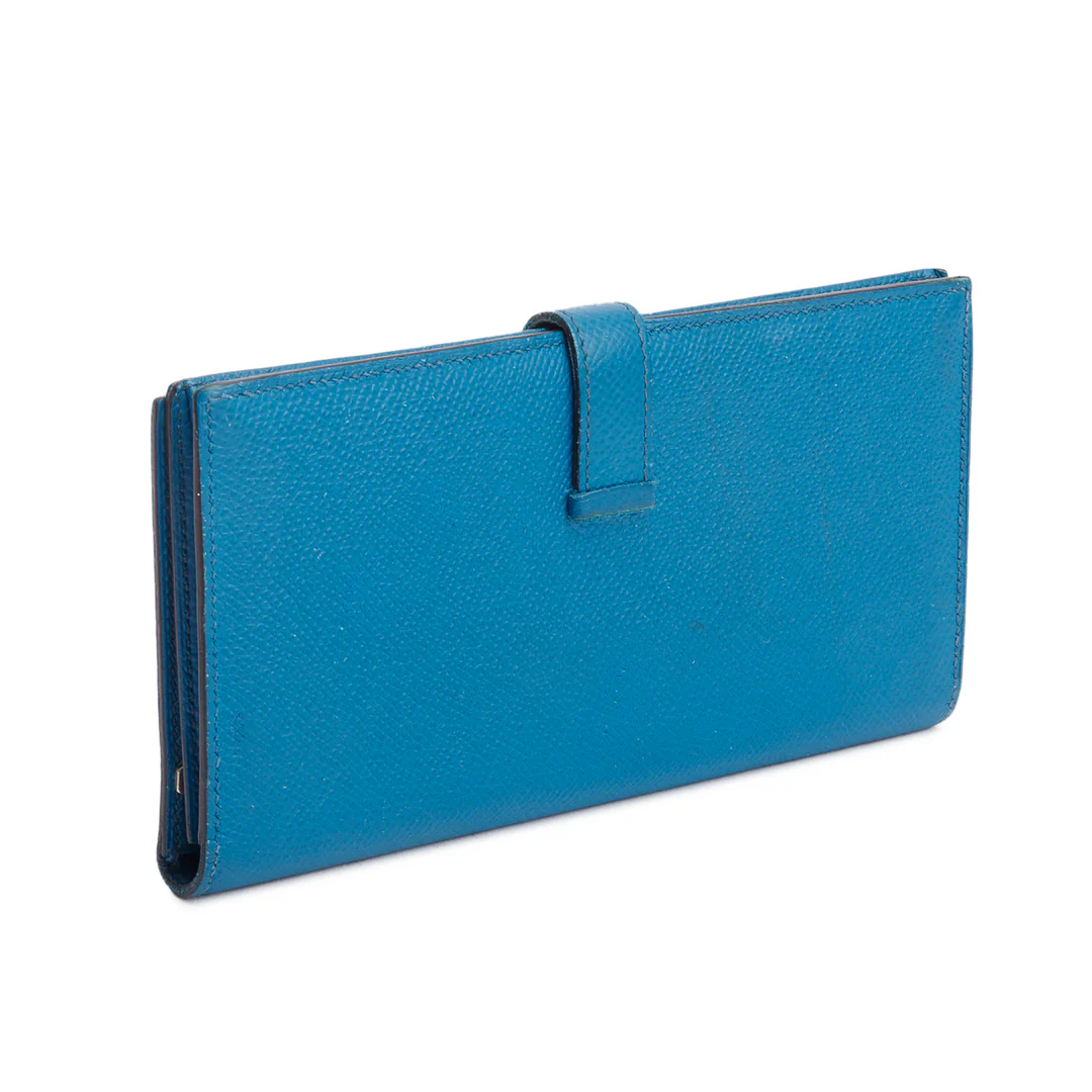 Bleu Izmir Epsom Leather Bearn Gusset Wallet w/ Box