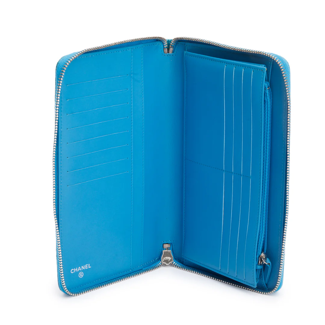 Blue Patent Leather Large Zip Around Organizer Wallet w/ Box & Authenticity Card