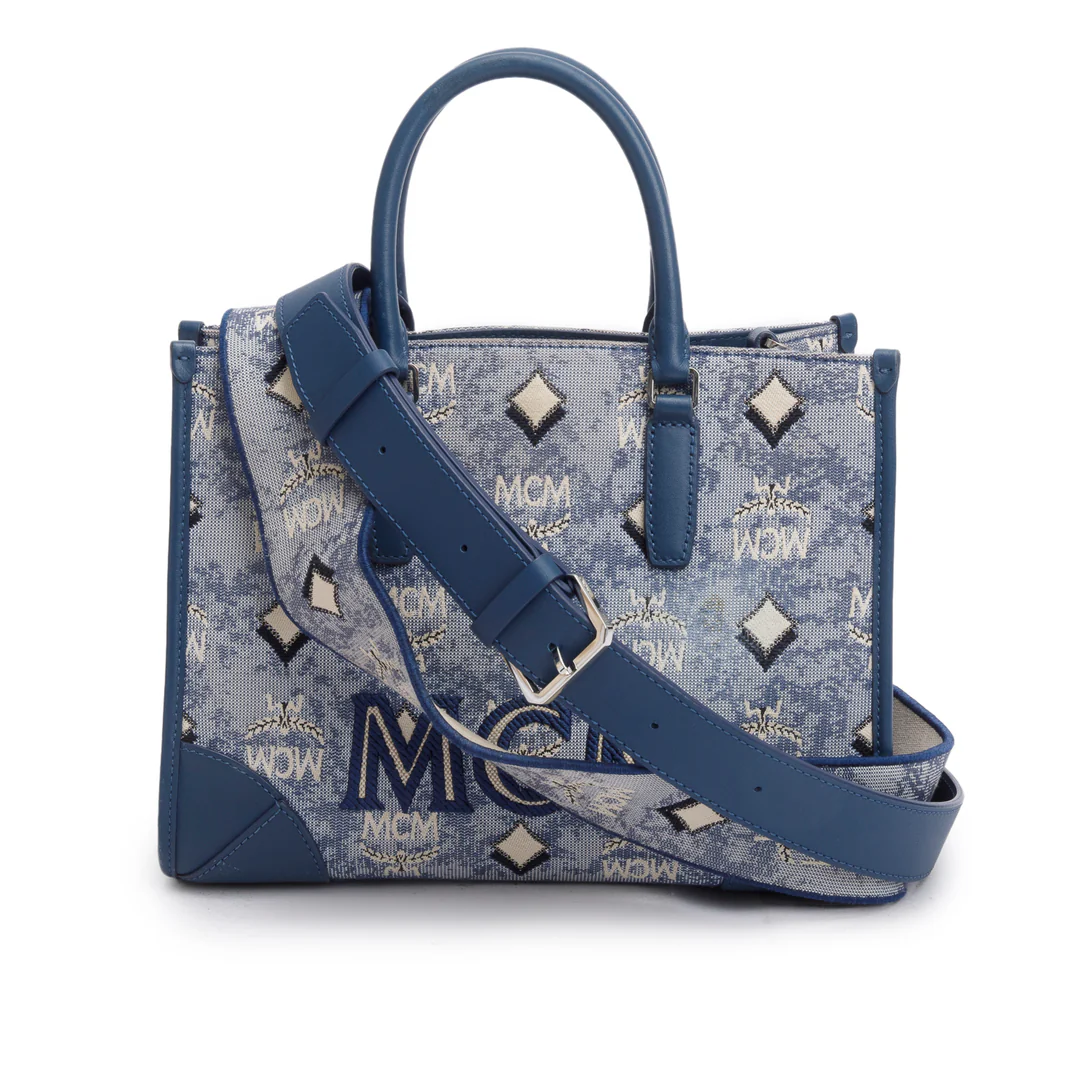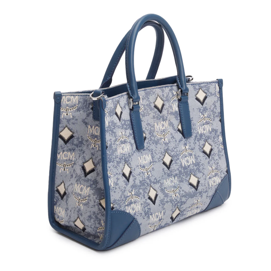 Blue Vintage Monogram Jacquard Small Munchen Tote w/ Strap
