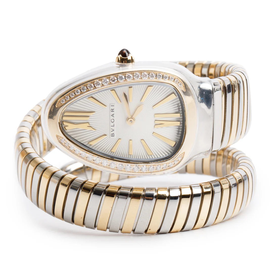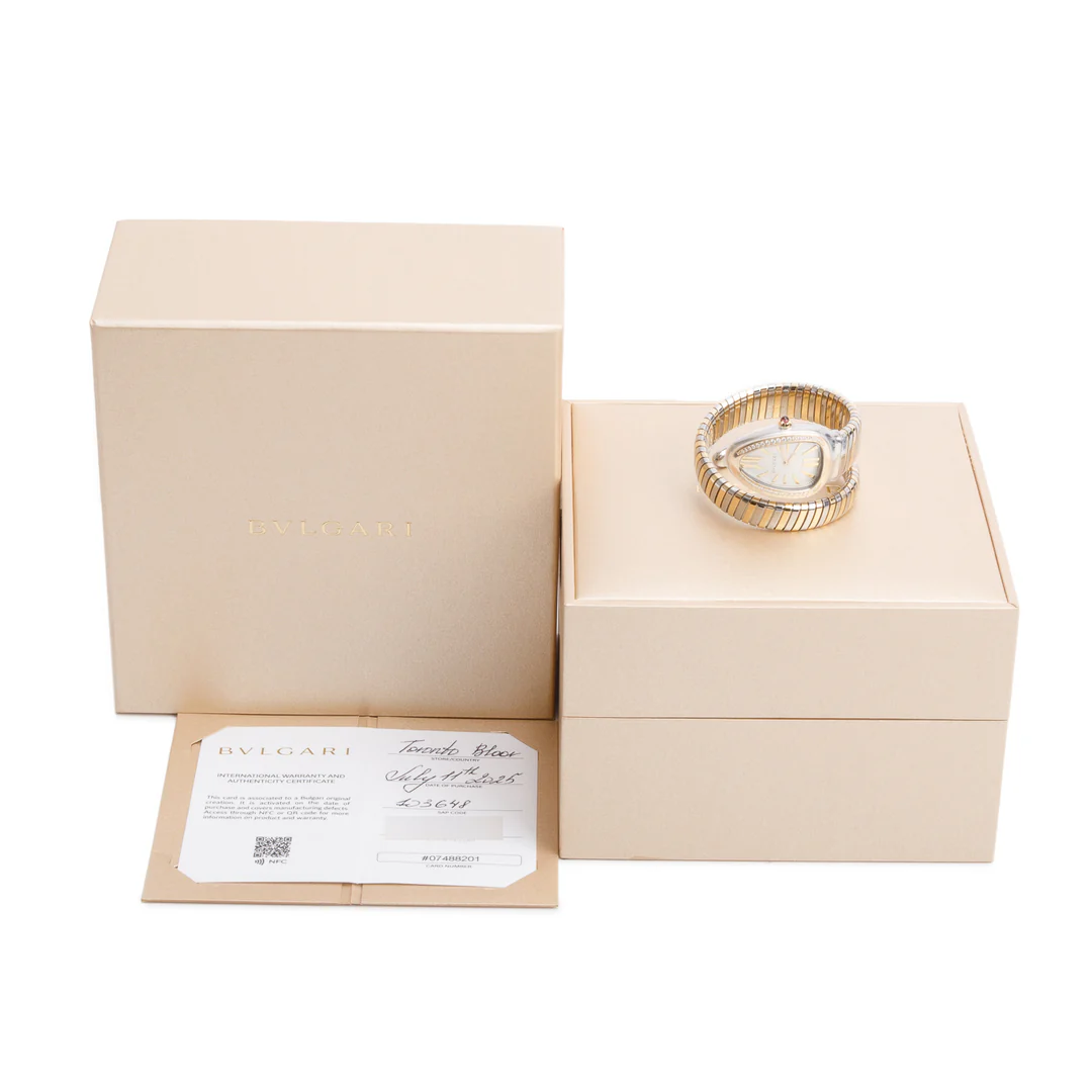 BVLGARI 2025 Stainless Steel & 18k Yellow Gold Serpenti Tubogas Watch 103648 w/ Box & Papers