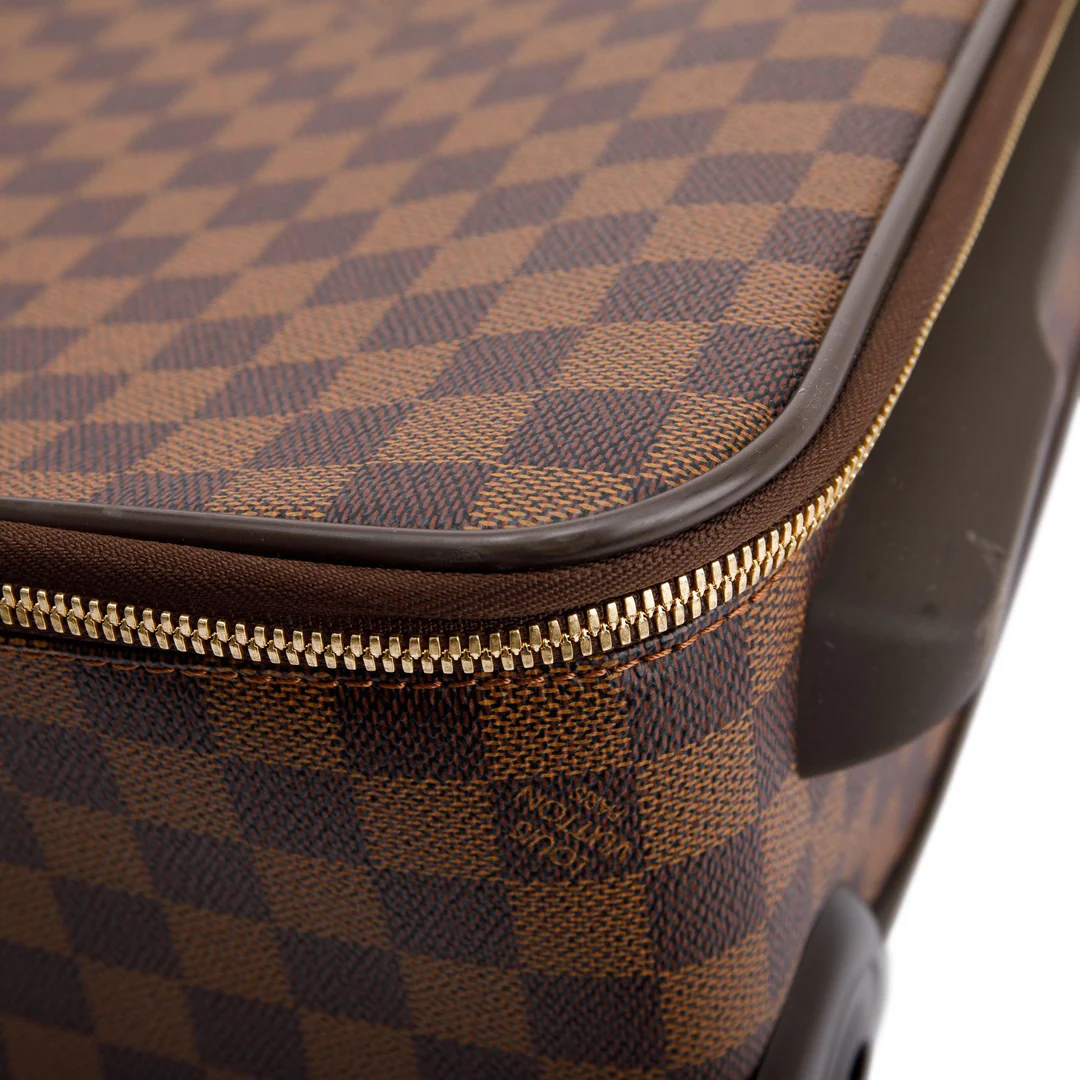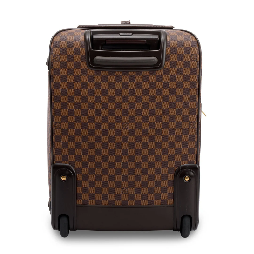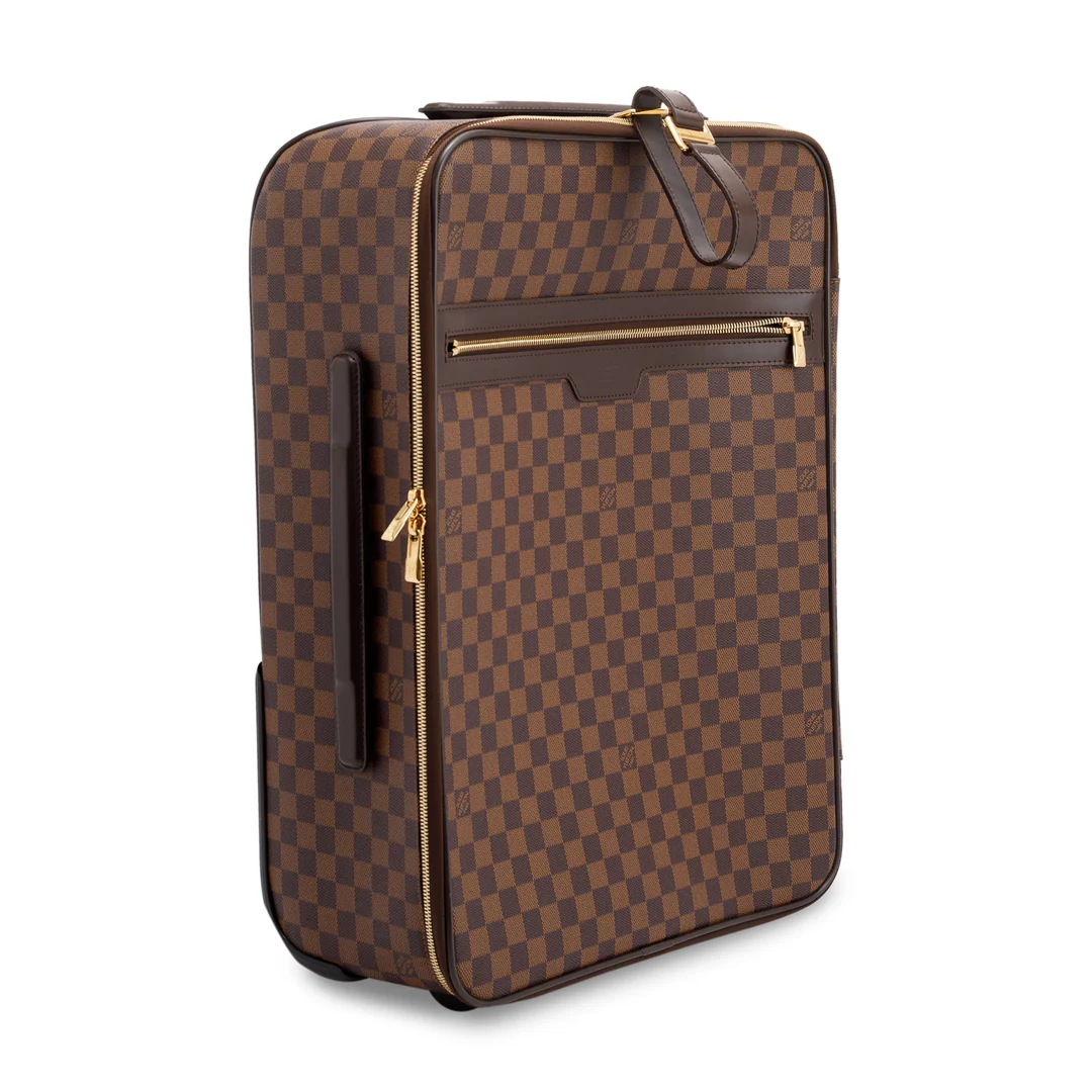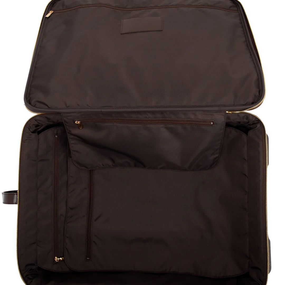 Condition: Very Good, slight scuffs at exterior leather trim and handles, some marks and scratches at wheels and base, clean interior.