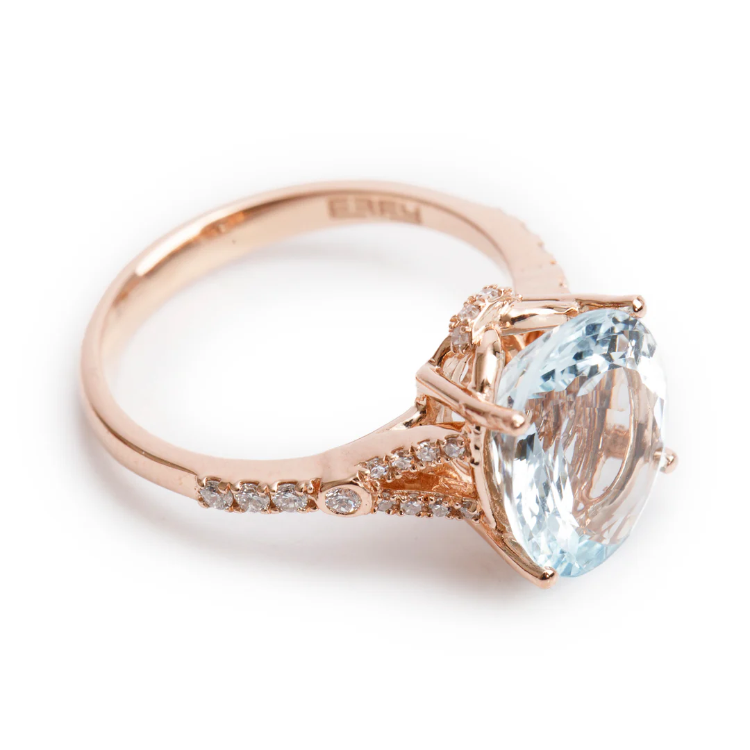 Be the first to review “Effy 14k Rose Gold Aquamarine & Diamond Ring, Size 7 w/ Box”