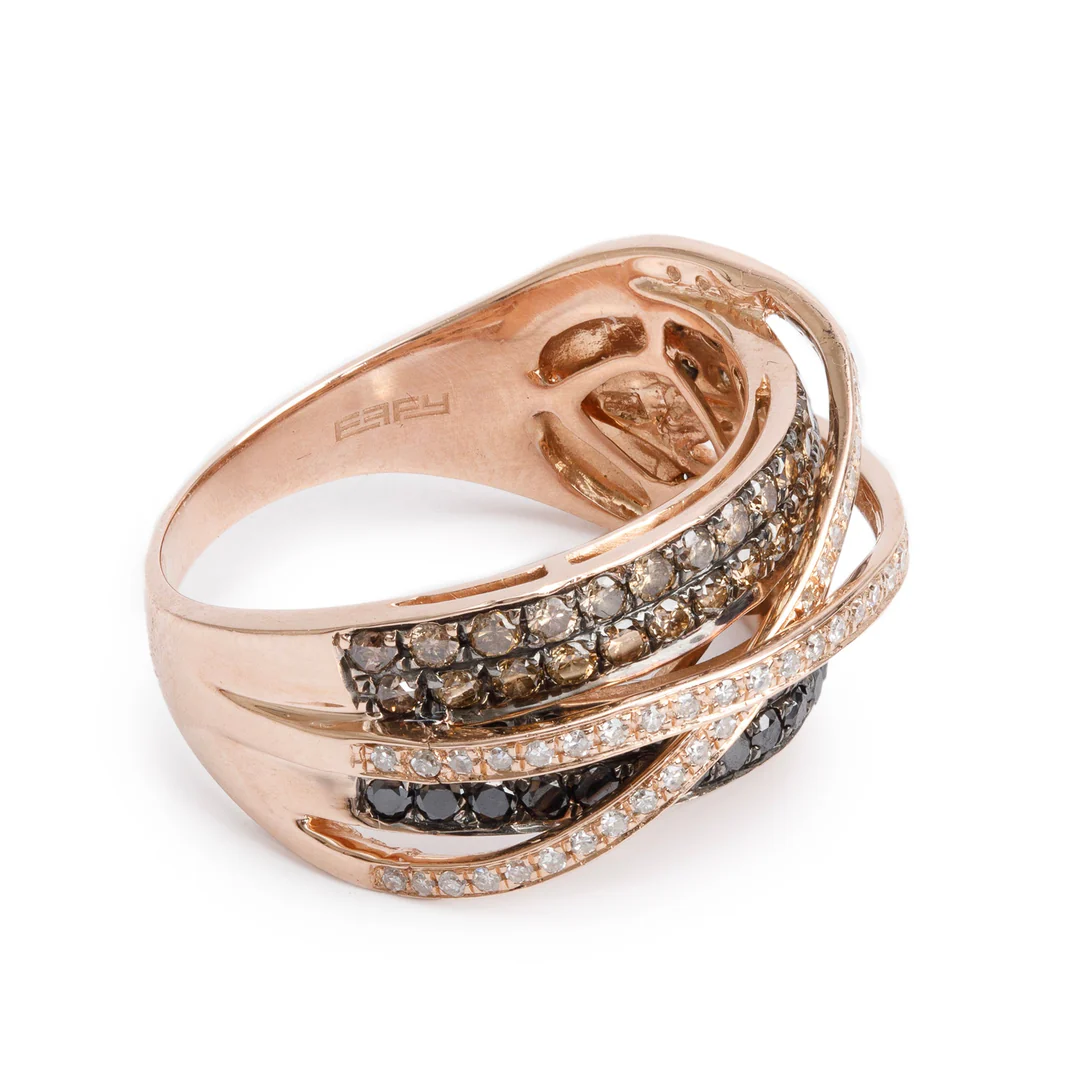 Effy 14k Rose Gold Black & White Diamond Crossover Ring, Size 11 w/ Receipt