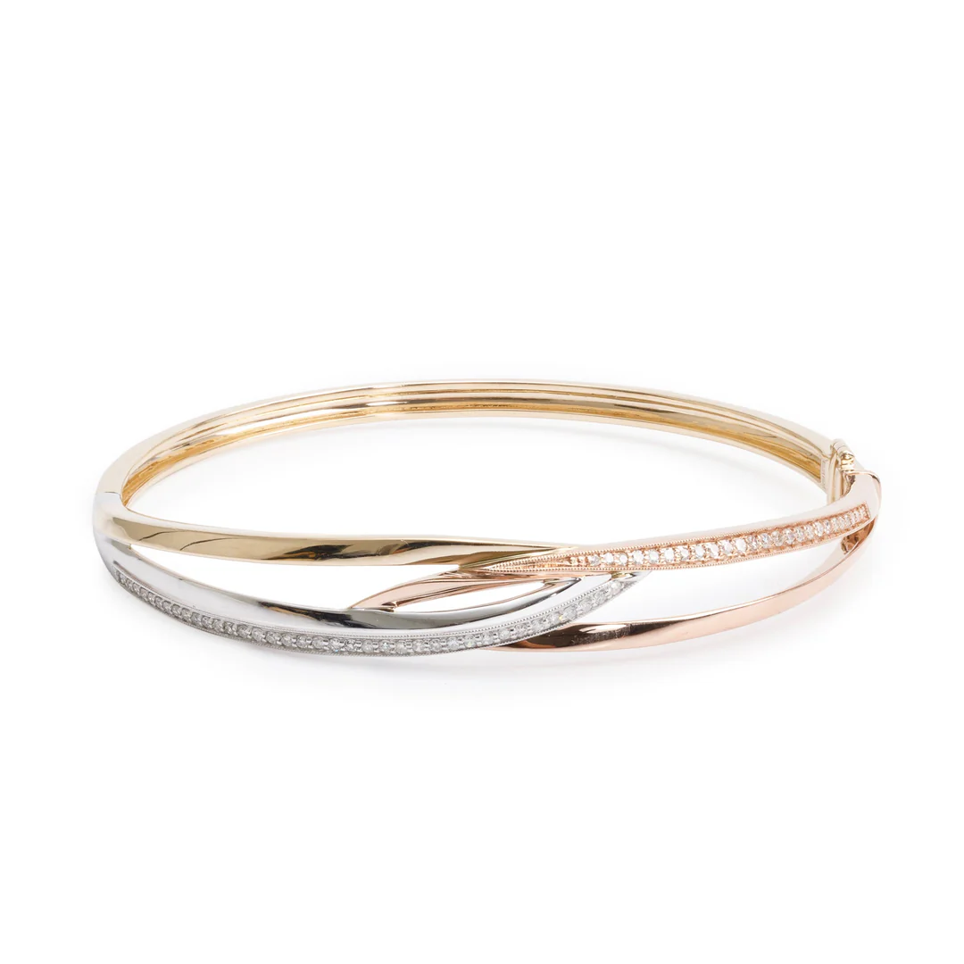 Effy 14k Yellow, White & Rose Gold Diamond Bangle Bracelet