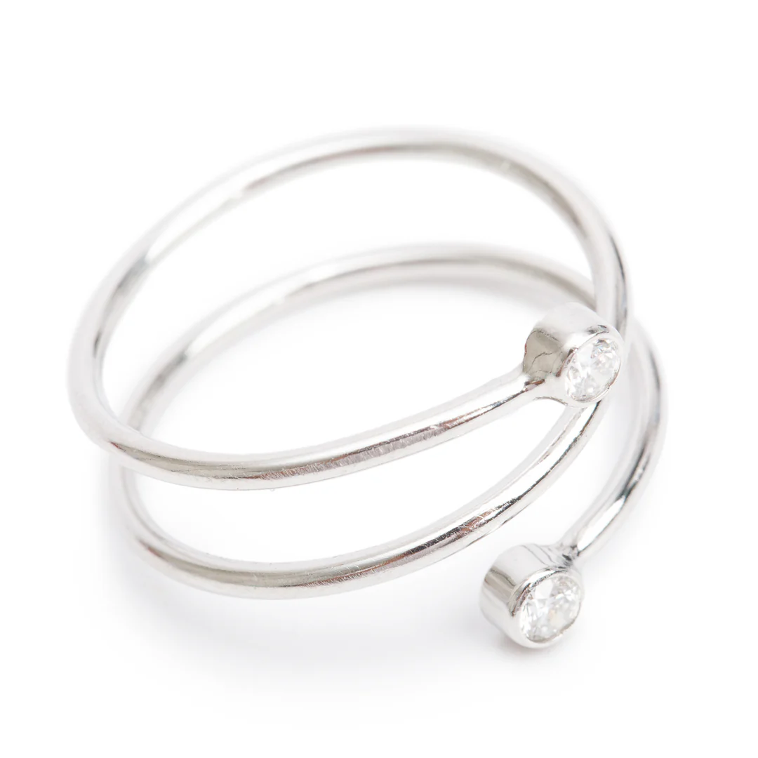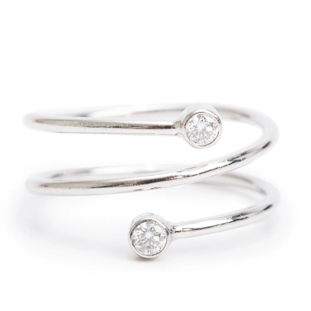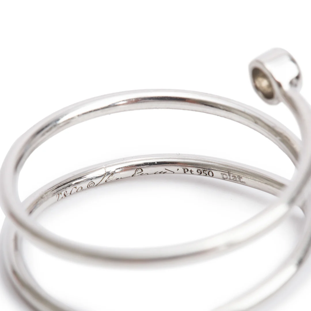 Be the first to review “Elsa Peretti Platinum Diamond Hoop Three-Row Ring, Size 6.5 w/ Box”