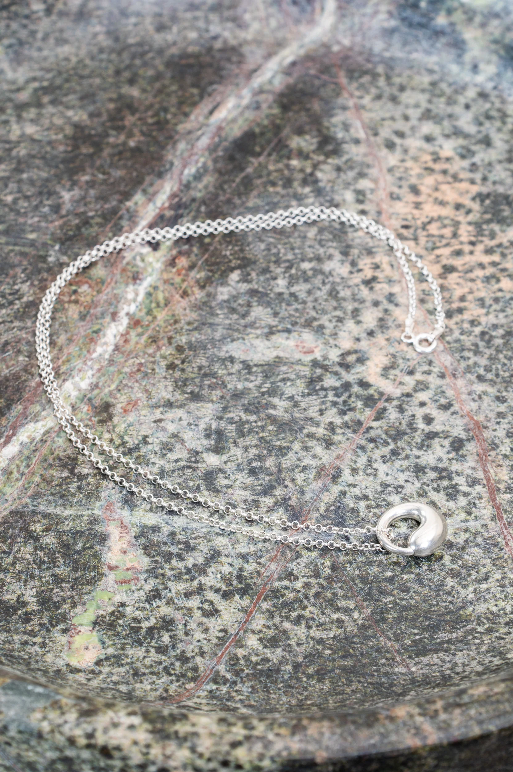 A symbol of timeless elegance, this necklace features a sleek circular pendant crafted in radiant sterling silver. Its minimalist design effortlessly complements any outfit, making it perfect for daily wear or special occasions.