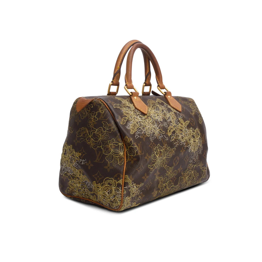 Condition:Â Good; some tarnishing at hardware; moderate discoloration at vachetta and handles; slight scuffing at corners; slight marks and odor at interior; slight loss of shape.