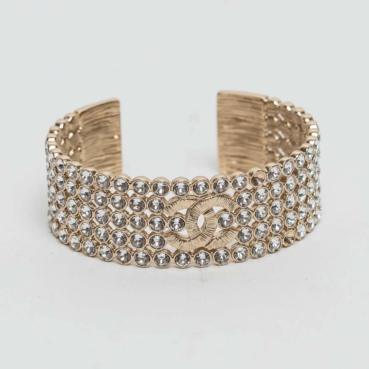 - Features: Interlocking logo, Inset with round cut crystals