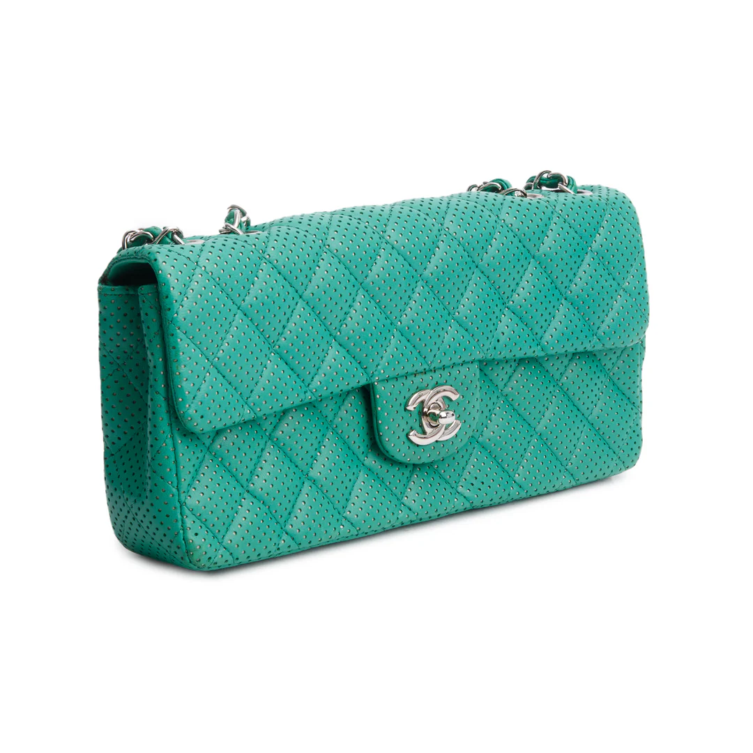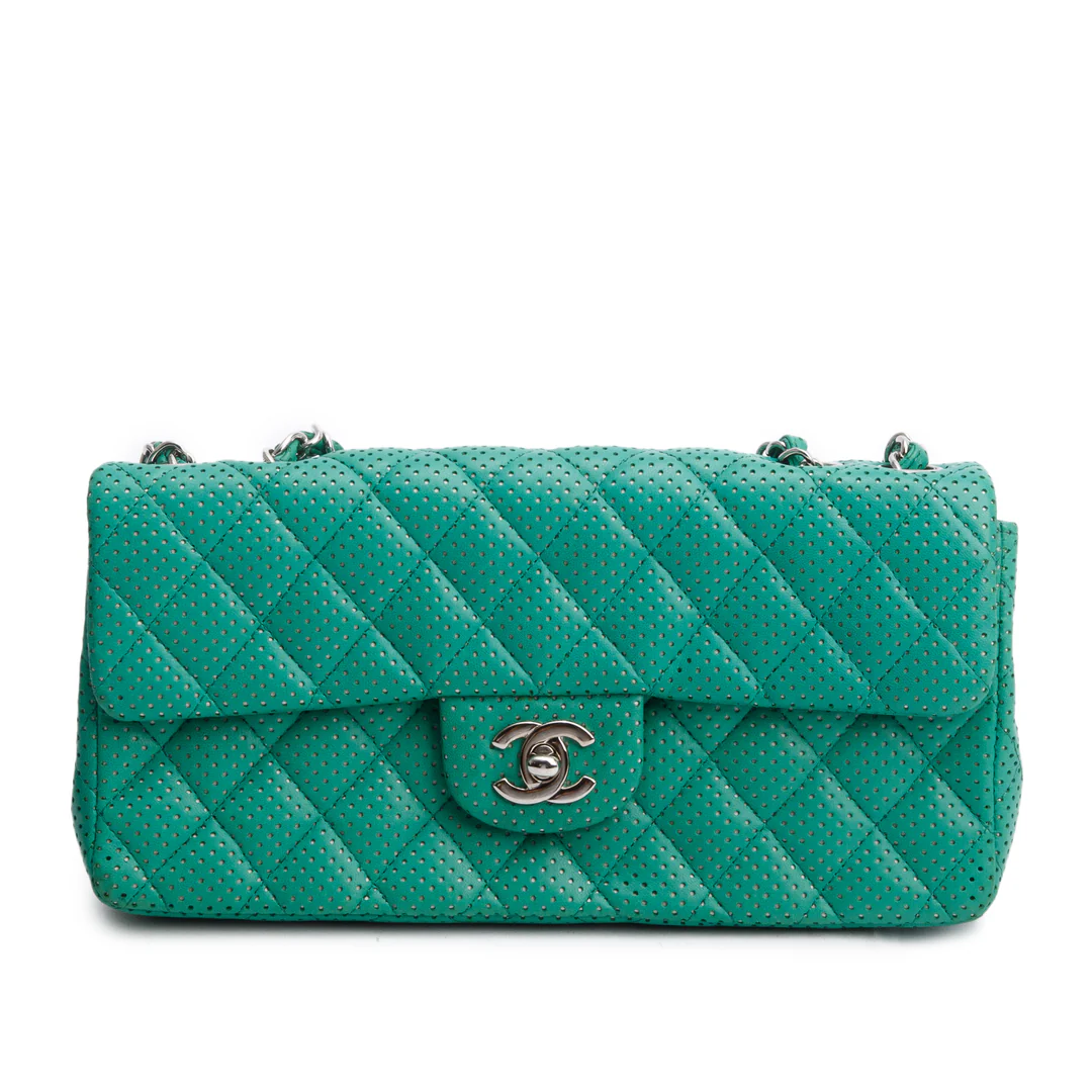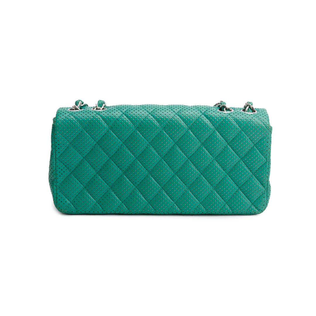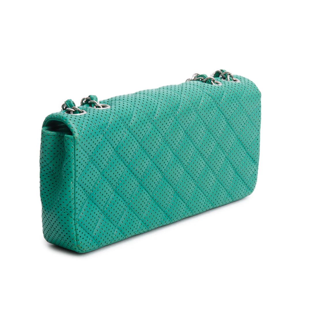 Green Lambskin Perforated East West Flap Bag