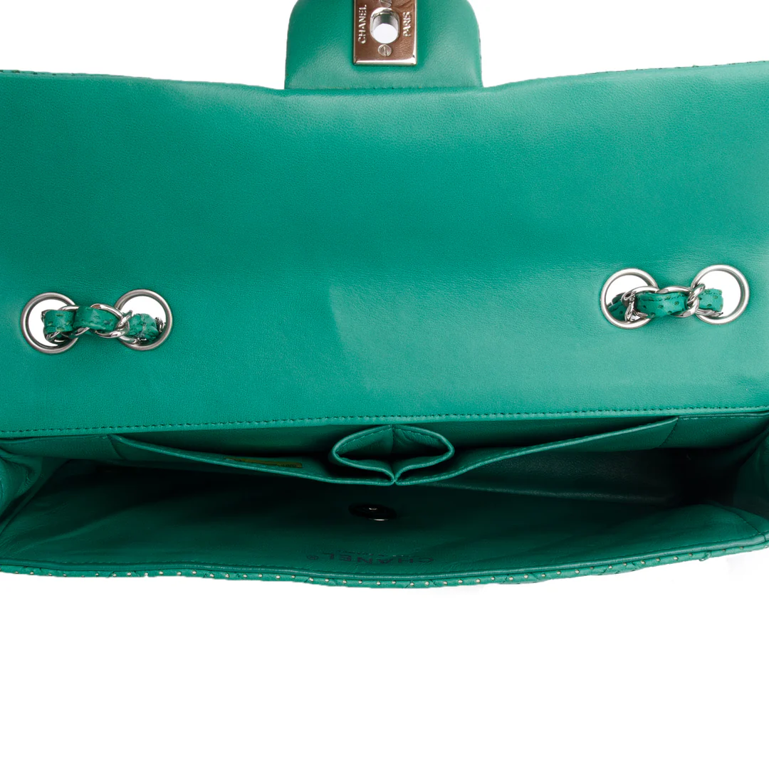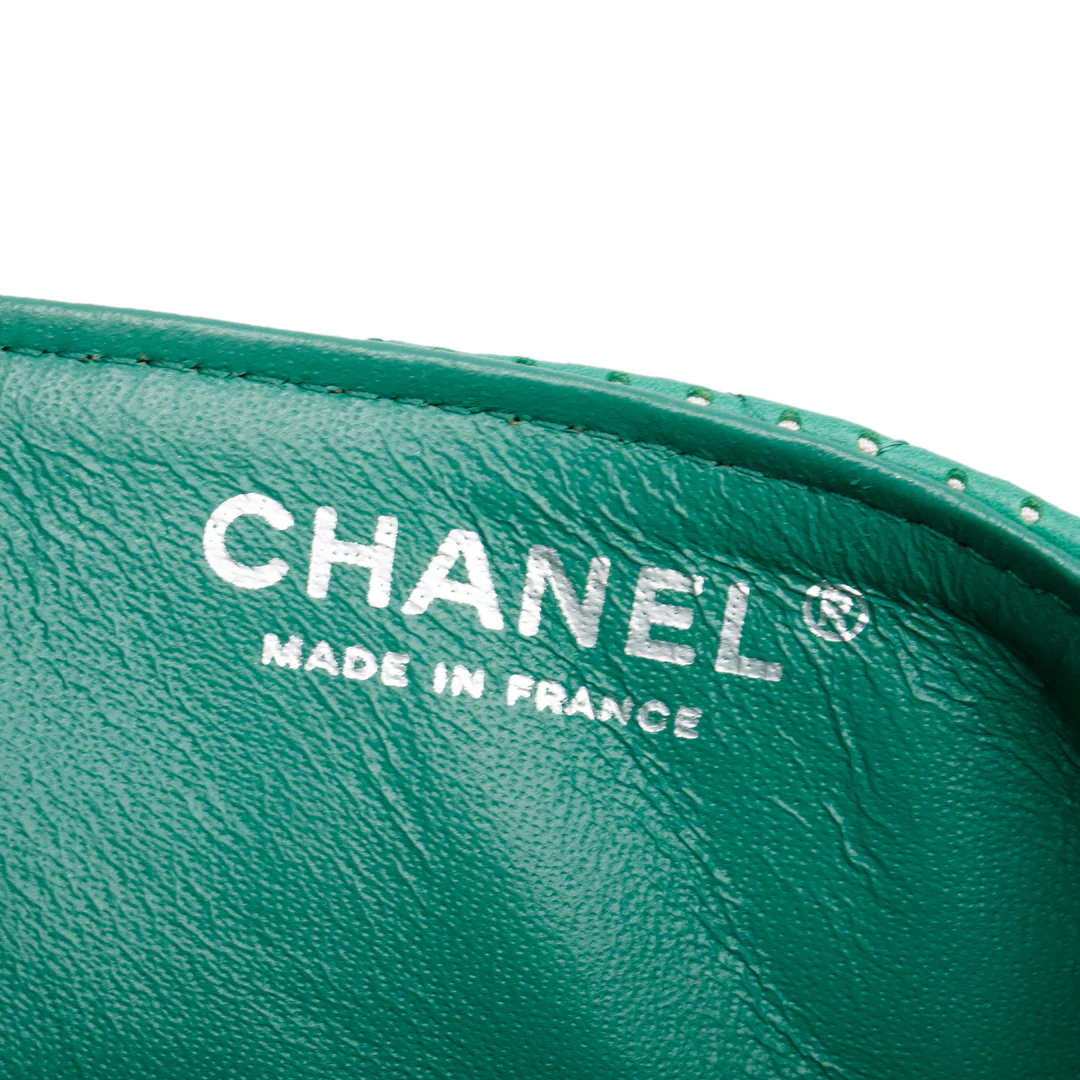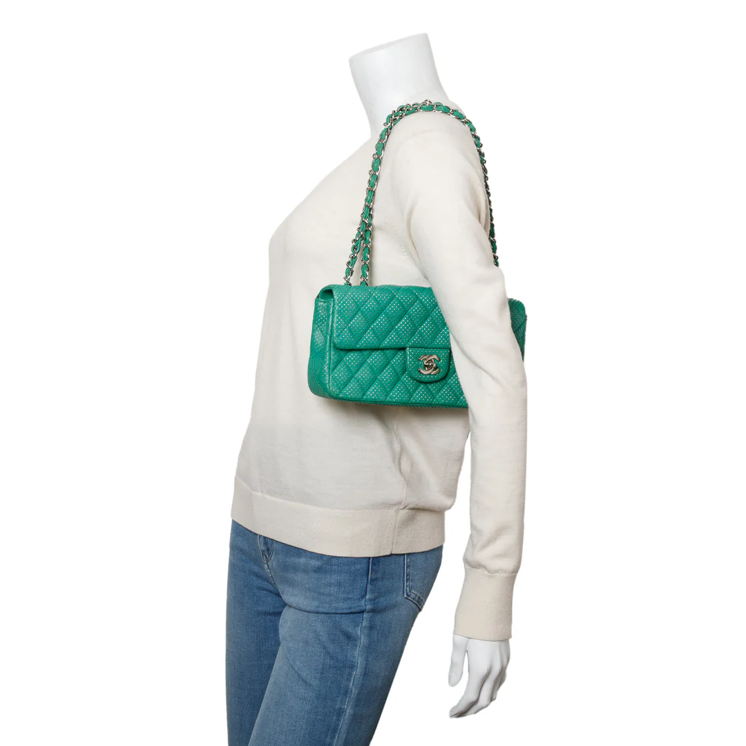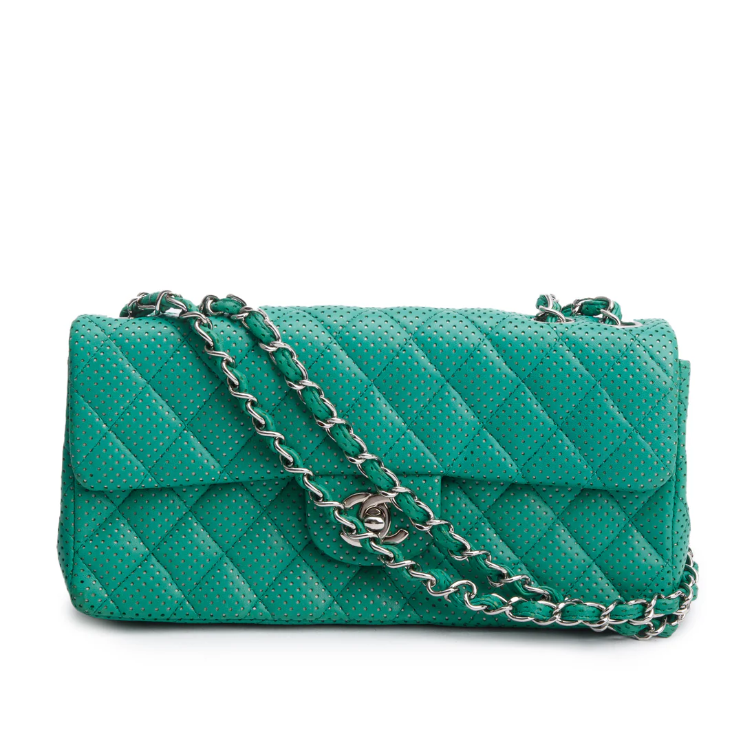 Green Lambskin Perforated East West Flap Bag