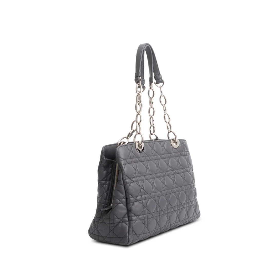 Grey Lambskin Cannage Small Dior Soft Zipped Shopping Tote