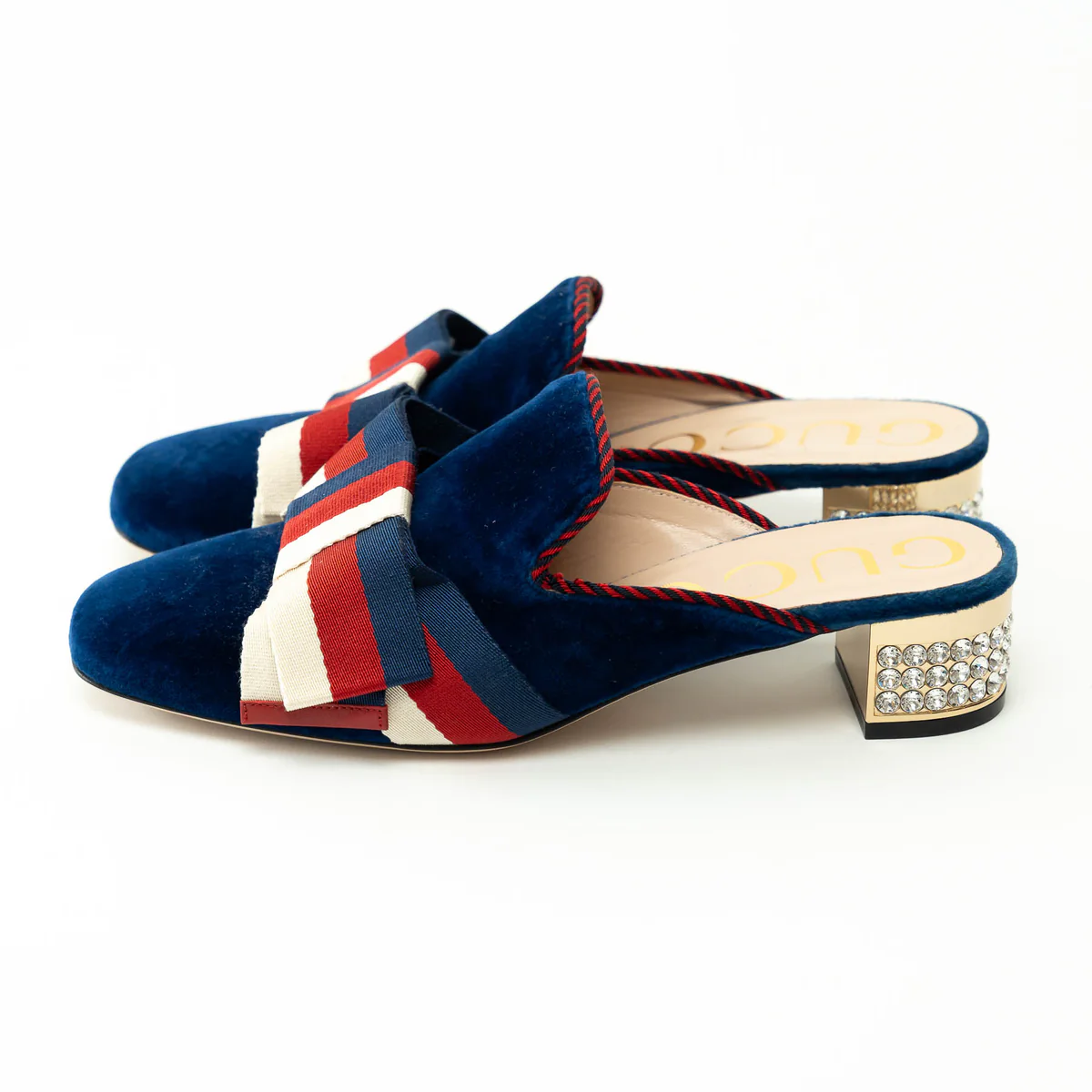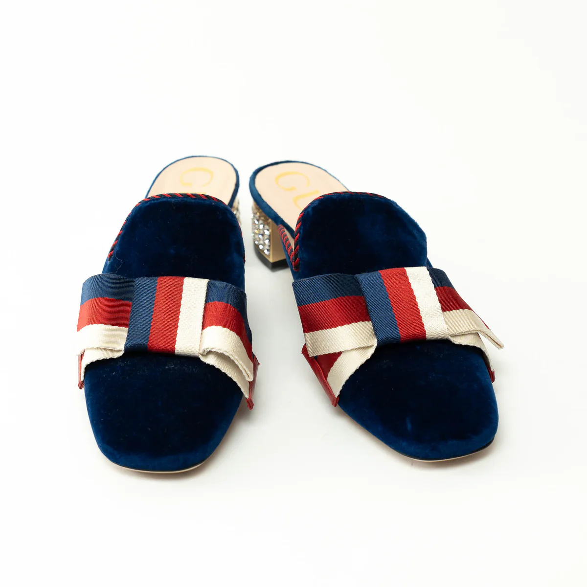 Gucci Blue Velvet Mules with Crystal Embellished Heel Size 38