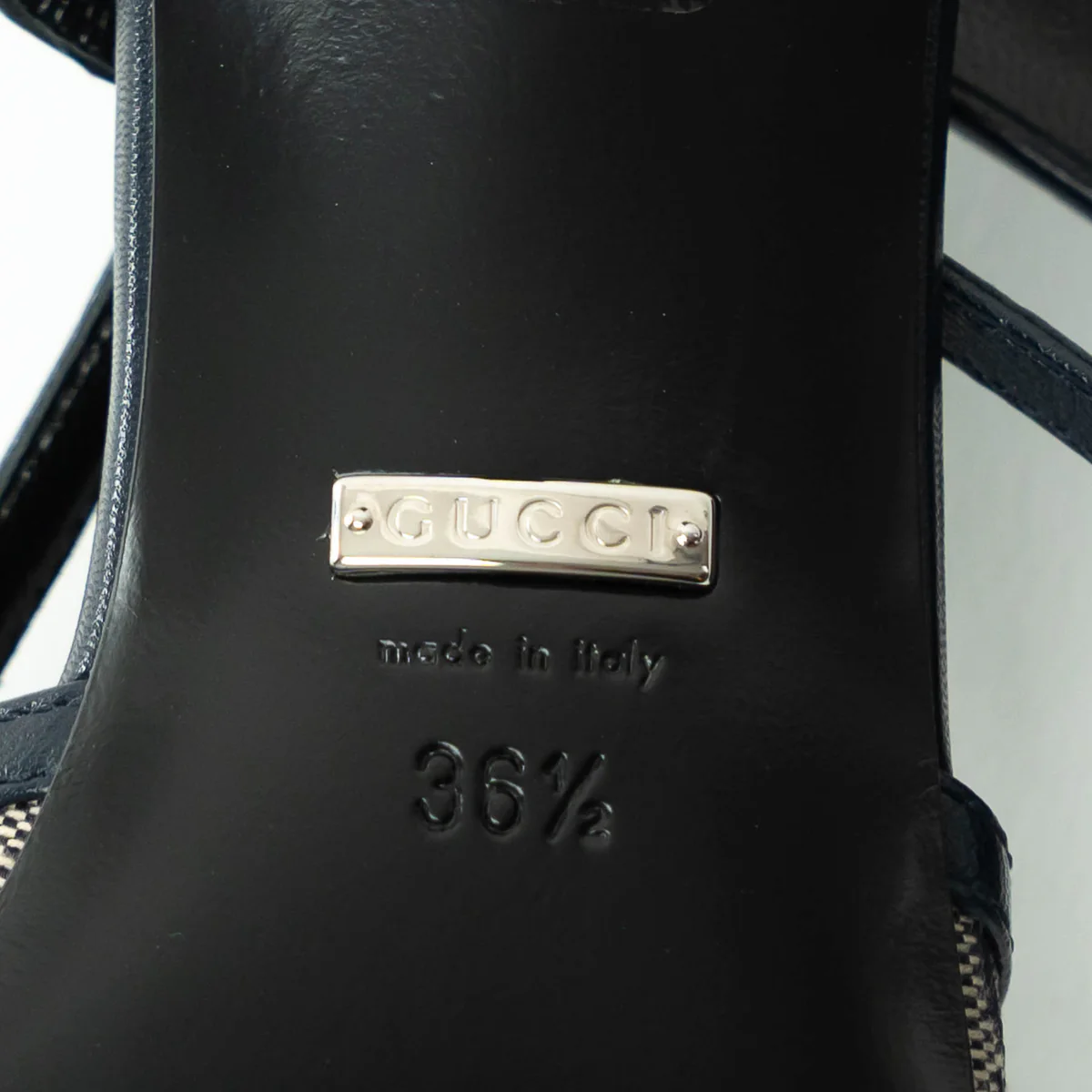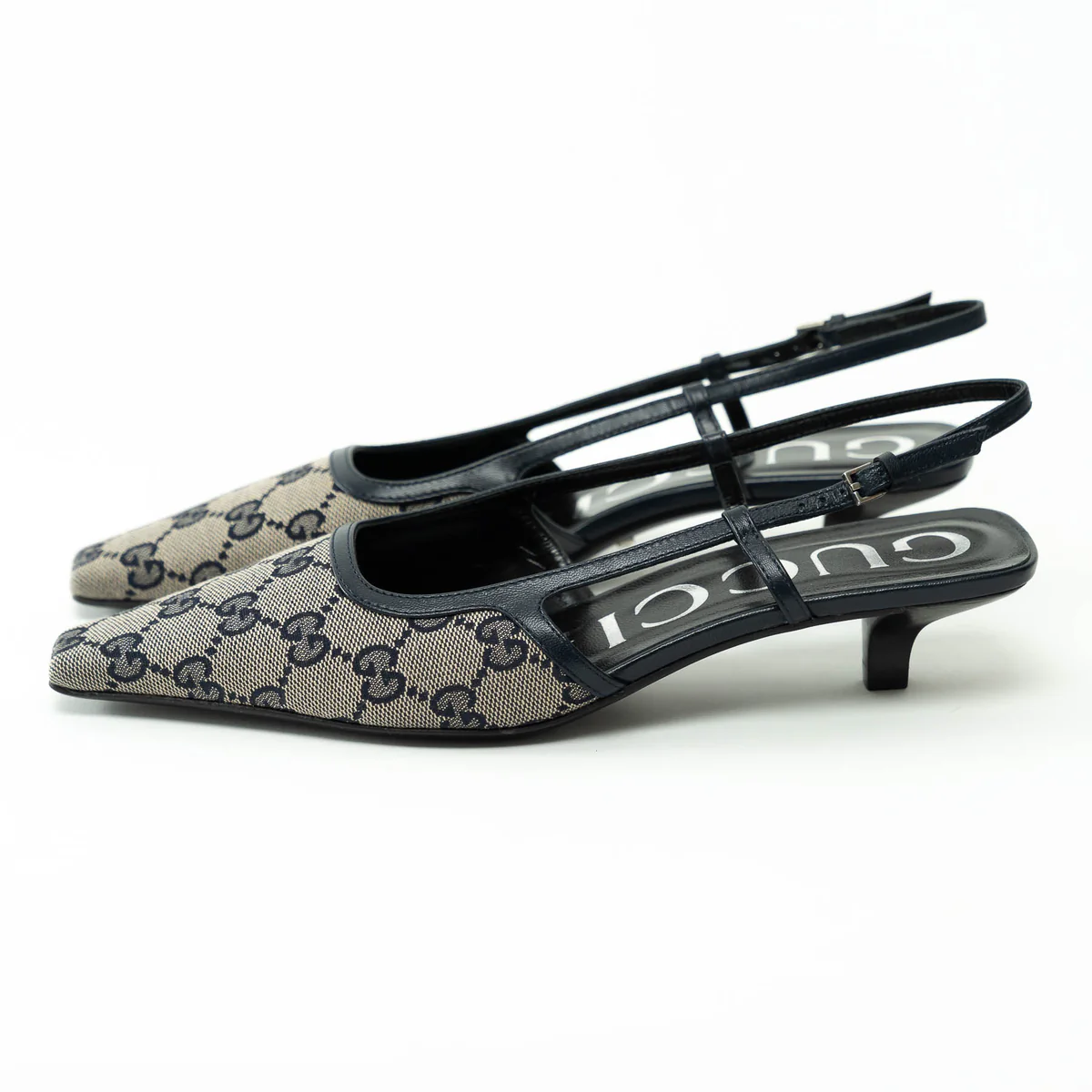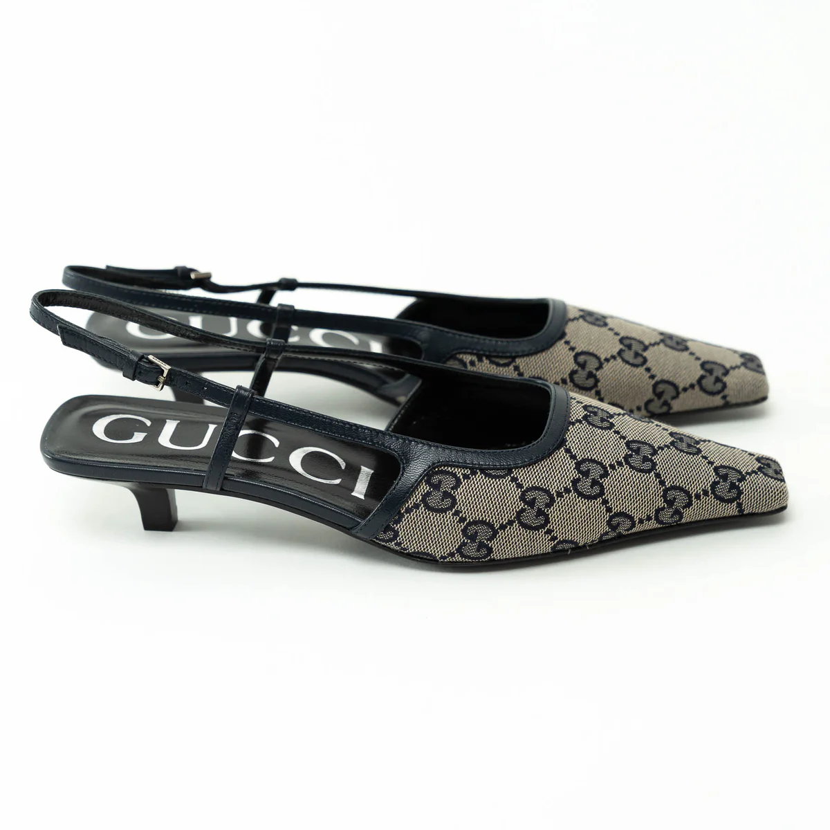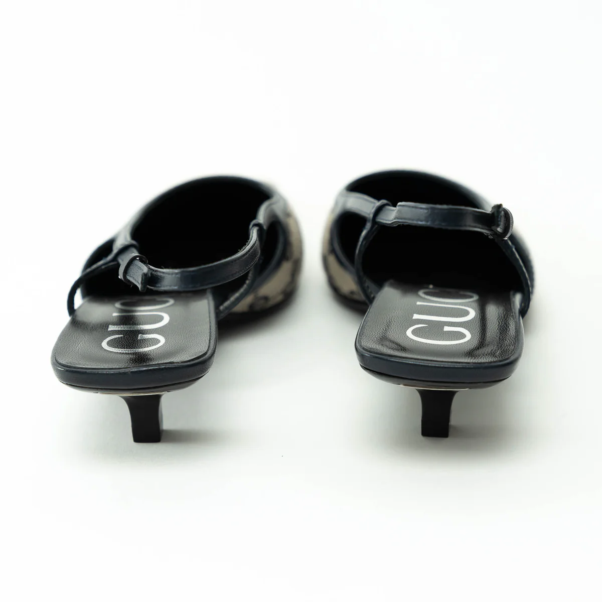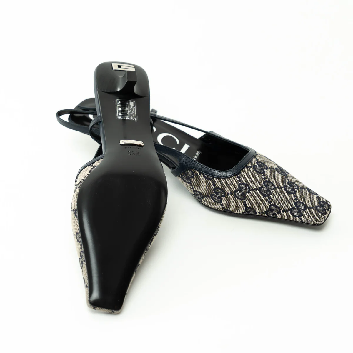 Gucci Monogram Sling Back Kitten Heels Size 36.5