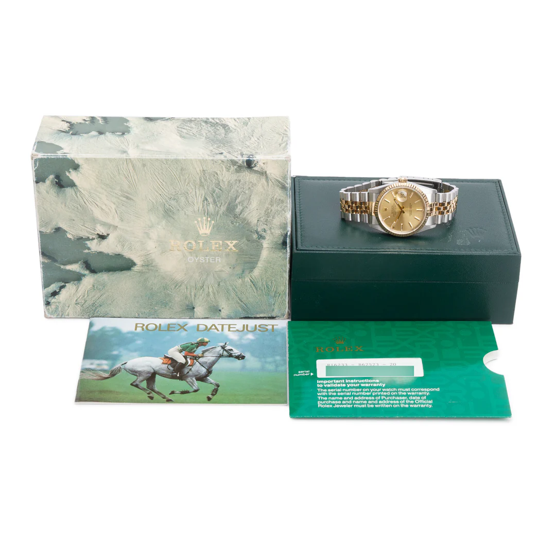 Stainless Steel & 18k Yellow Gold Datejust 36 MM Automatic Watch Gold Dial 16233 w/ Box & Papers