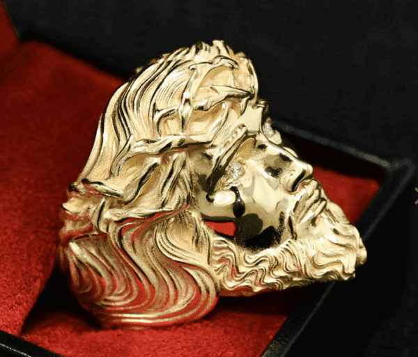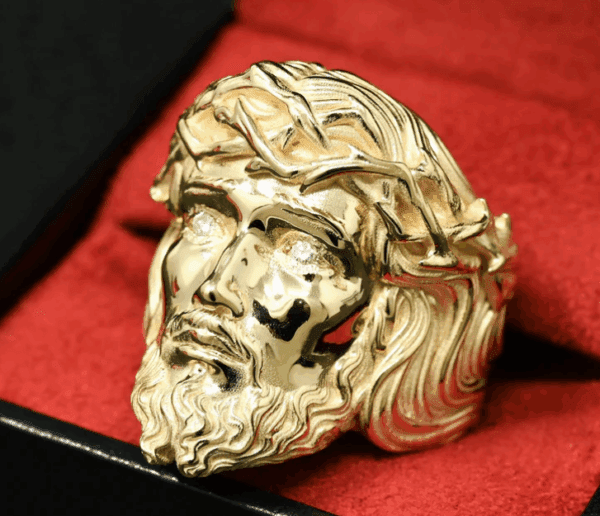 Bague Jesus à Diamants en Or 10-Karat