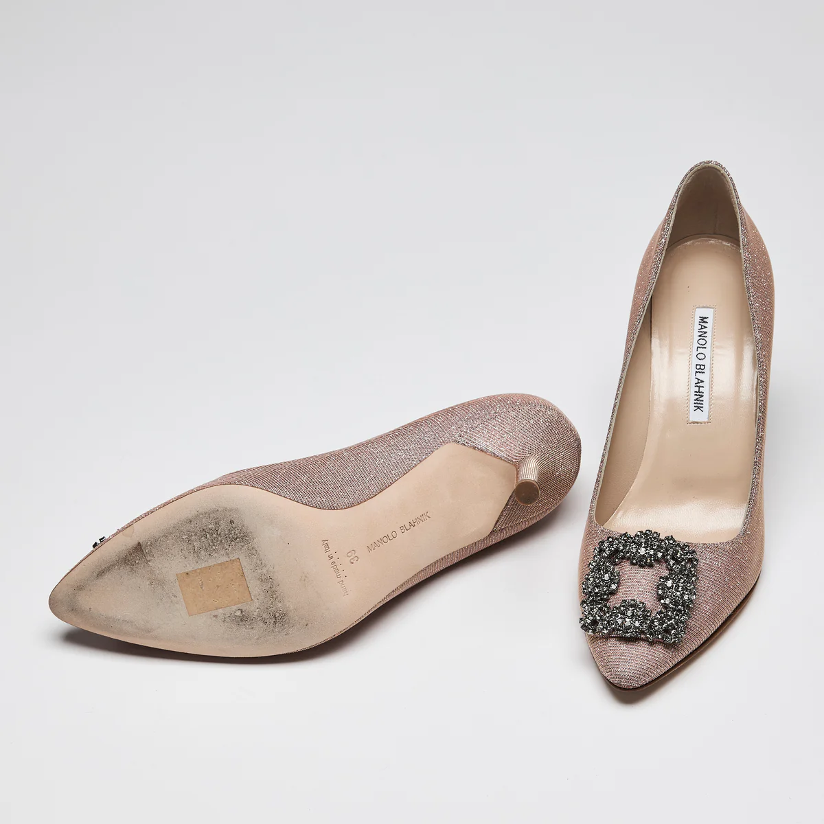 Manolo Blahnik Hangisi Pink Glitter Pumps Size 39.5