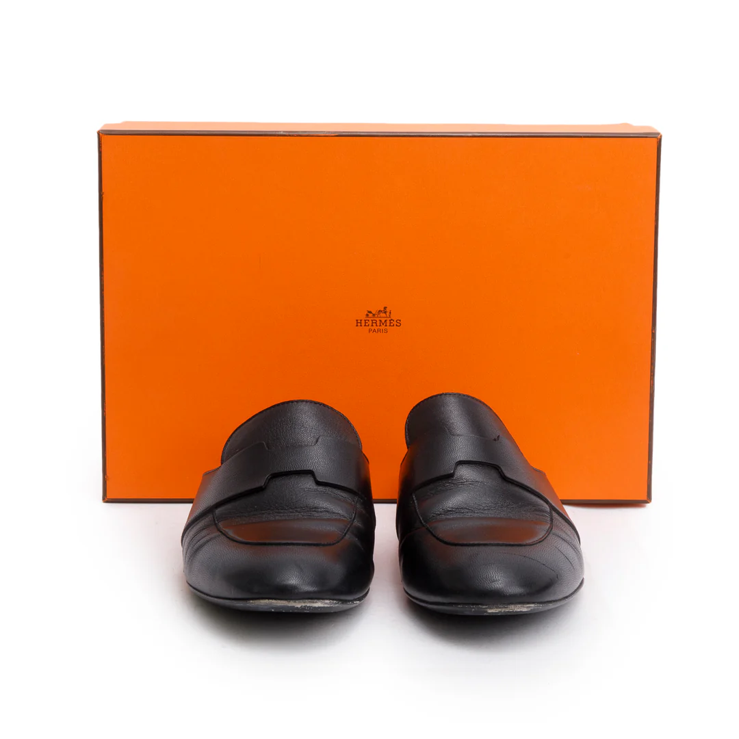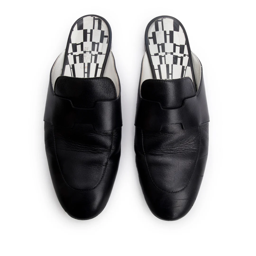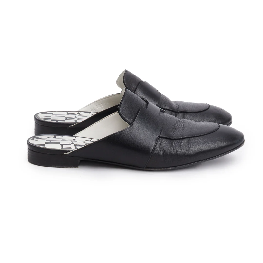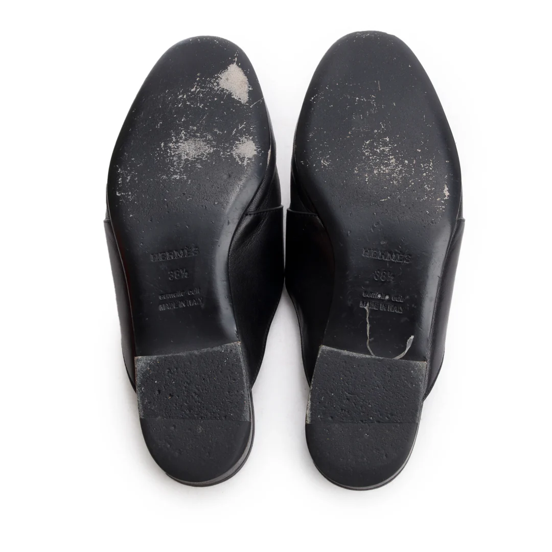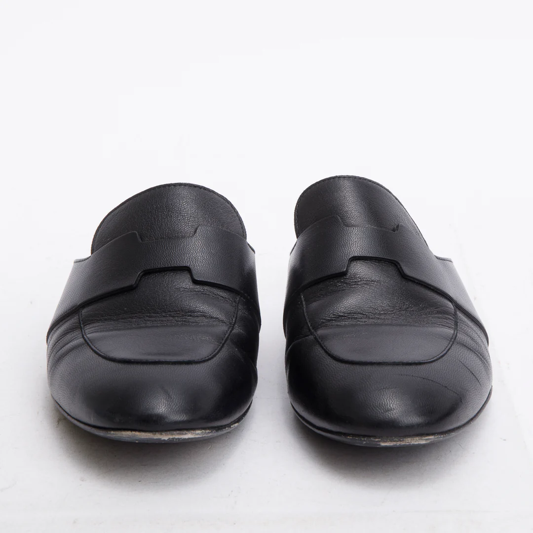 Noir Supple Goatskin Leather Catena Mules, Size 38.5 w/ Box