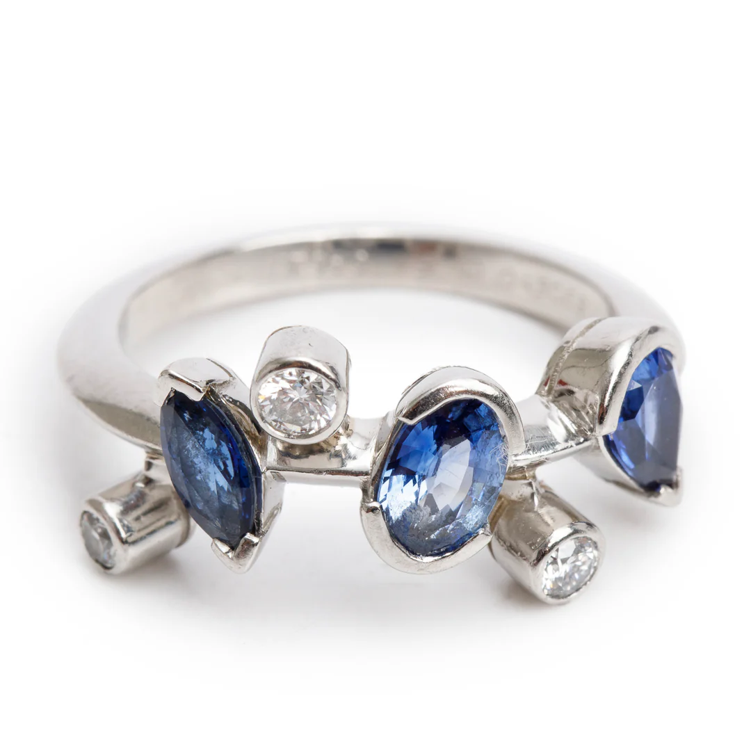Platinum Blue Sapphire & Diamond Meli Melo Ring, Size 5.75 w/ Box & Papers