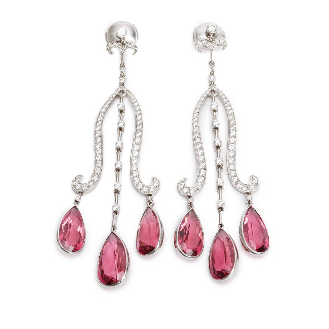 Platinum Pink Tourmaline & Diamond Drop Earrings w/ Box