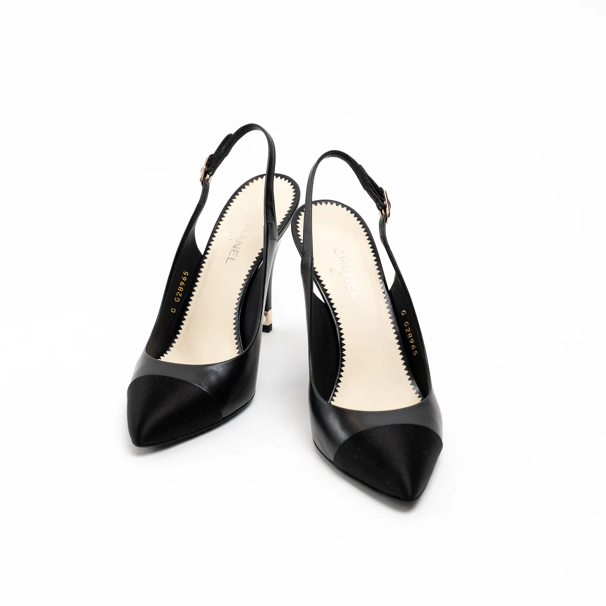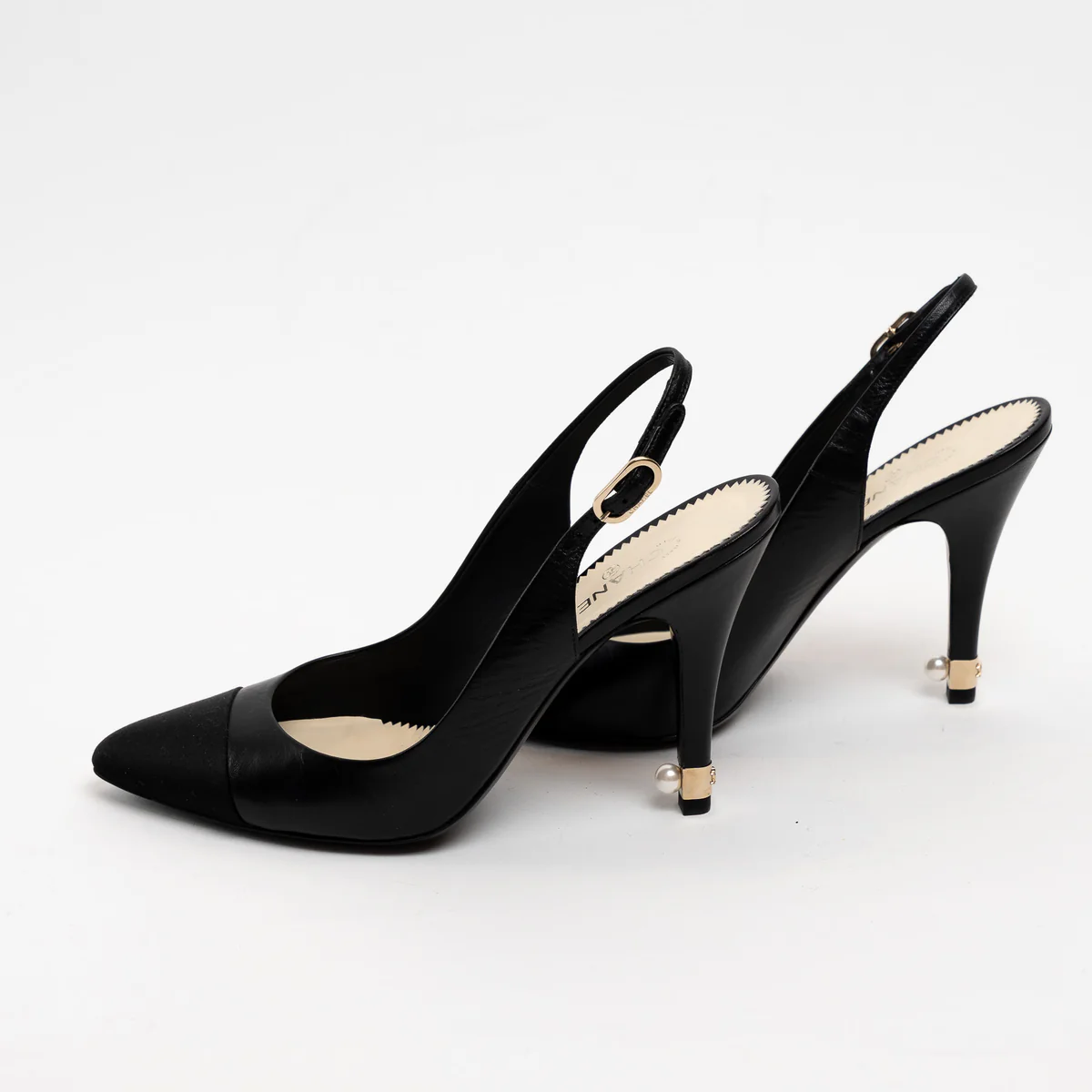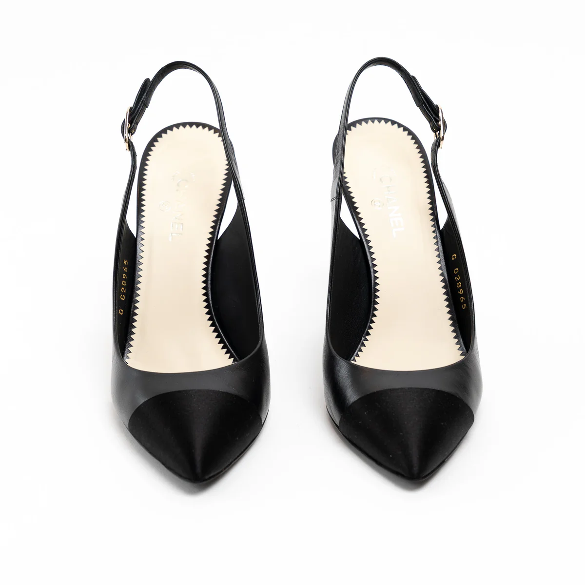 Pre-Loved Chanel™ Black Calfskin Leather Velvet Tip Slingback Sandals Size 39