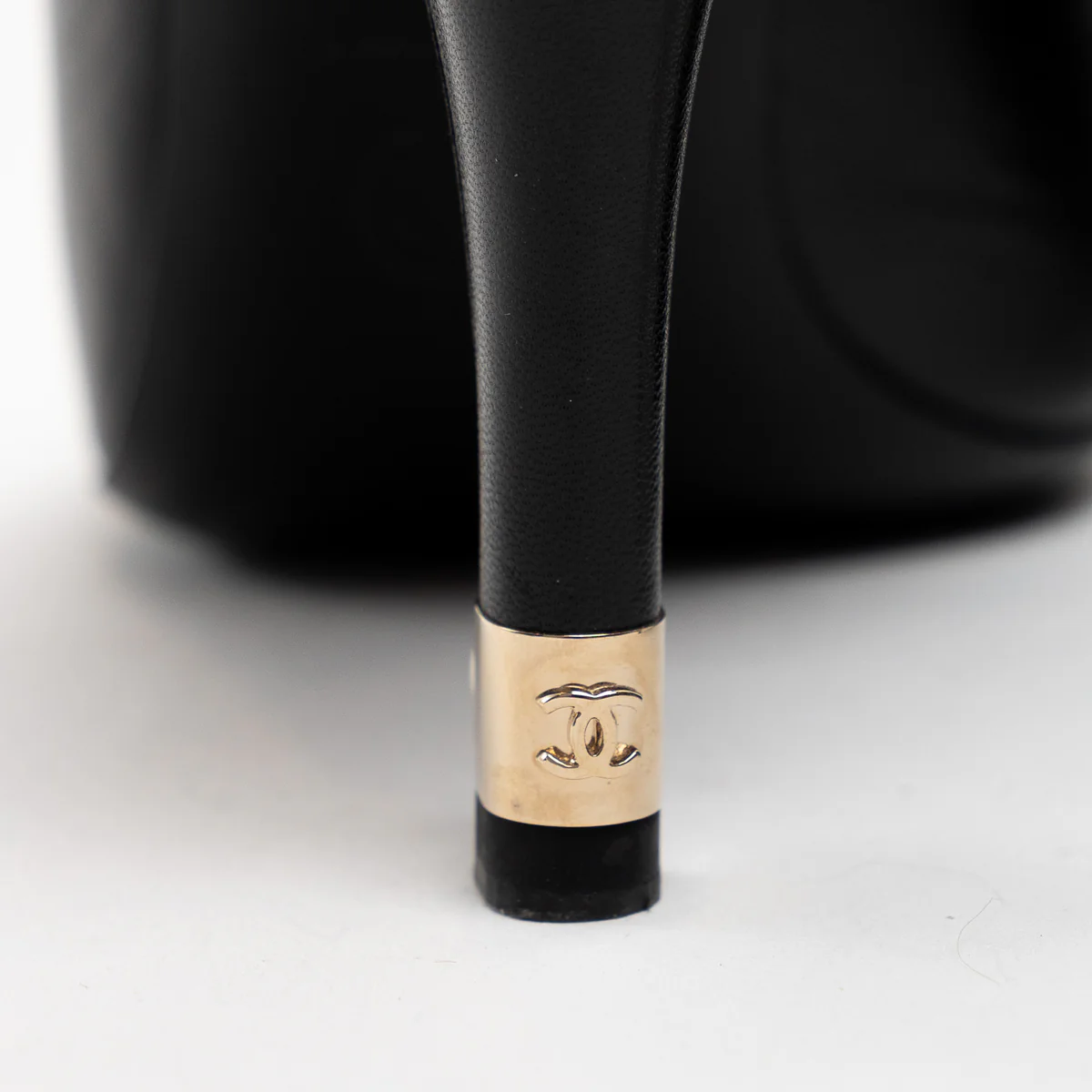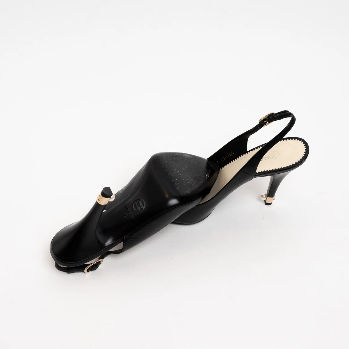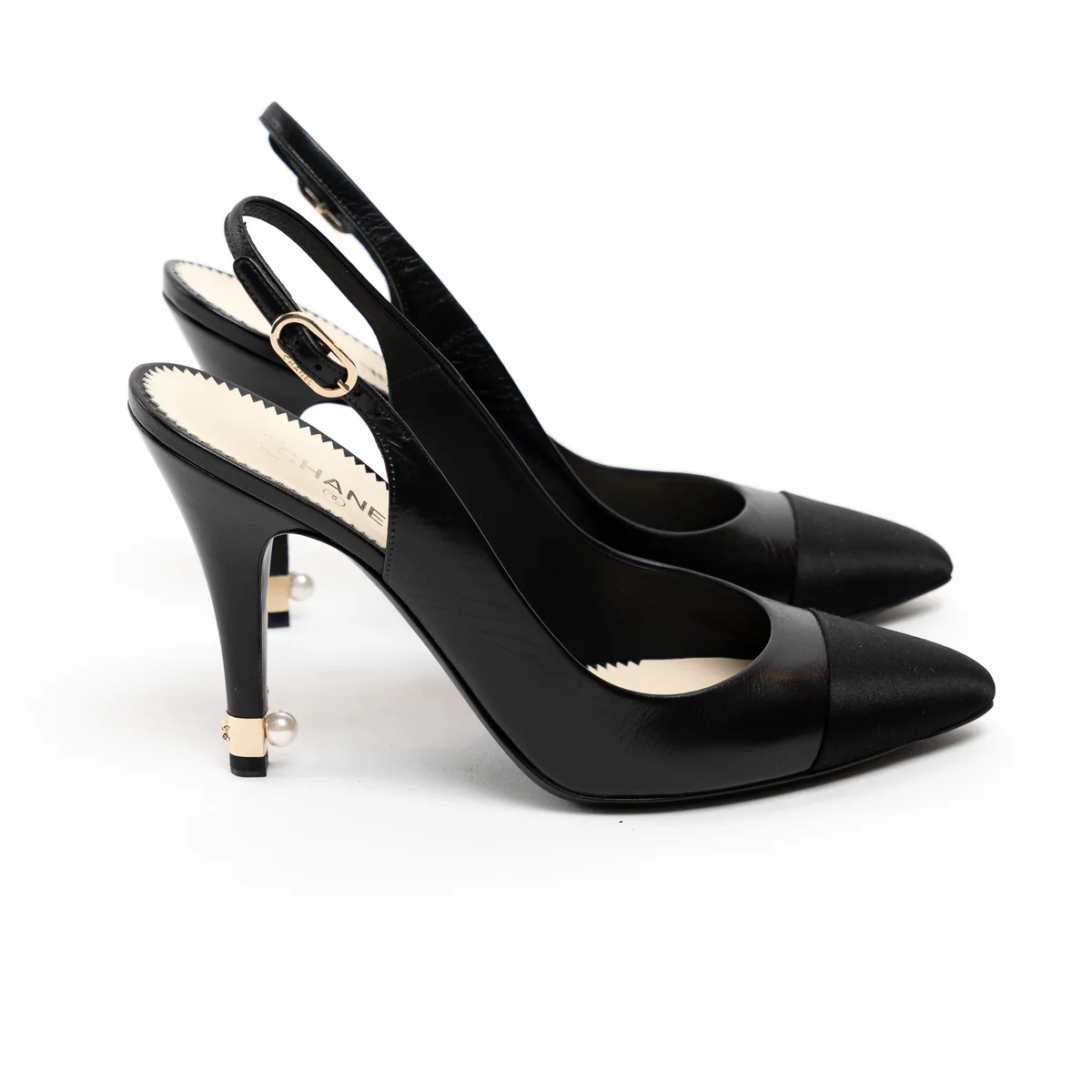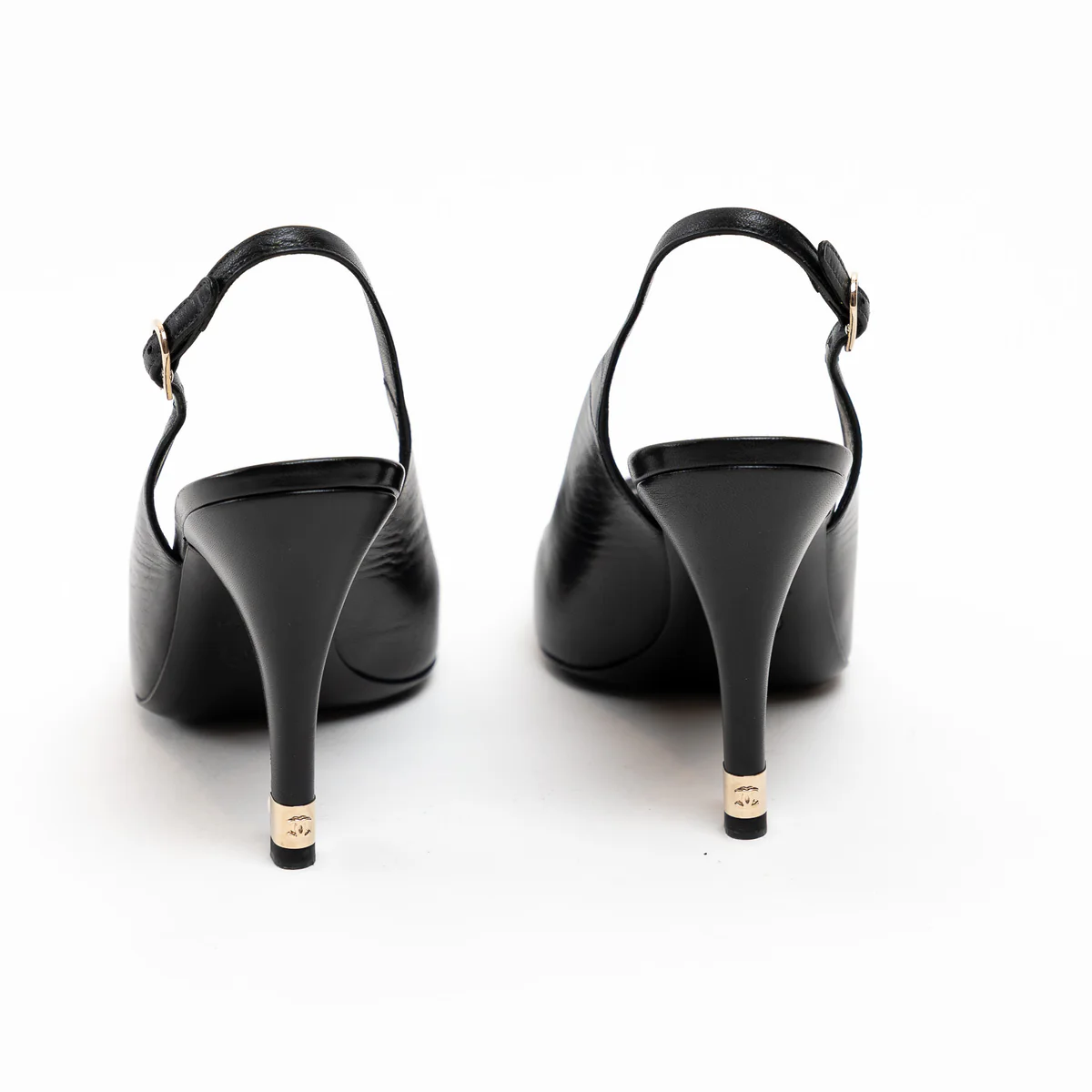 Pre-Loved Chanel™ Black Calfskin Leather Velvet Tip Slingback Sandals Size 39