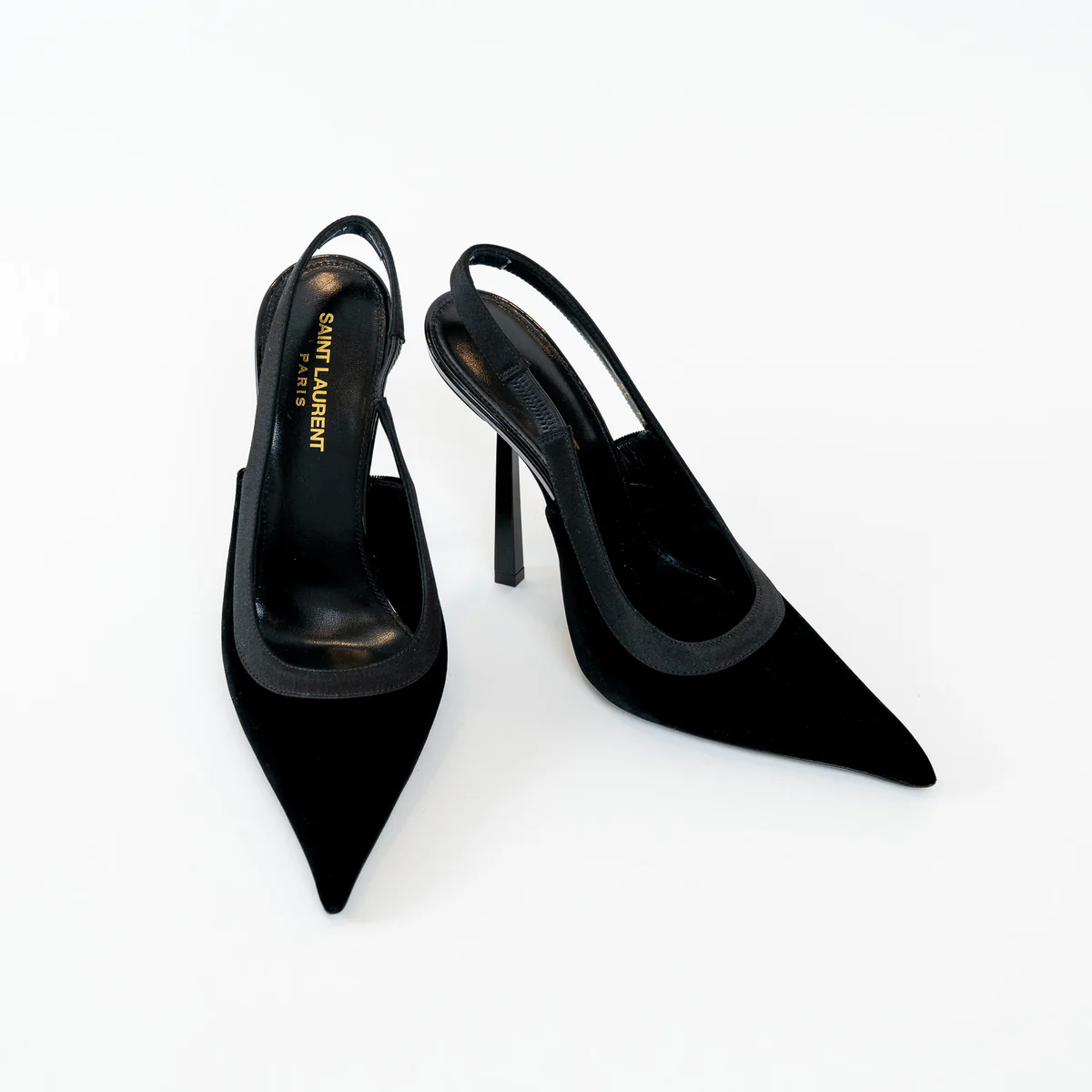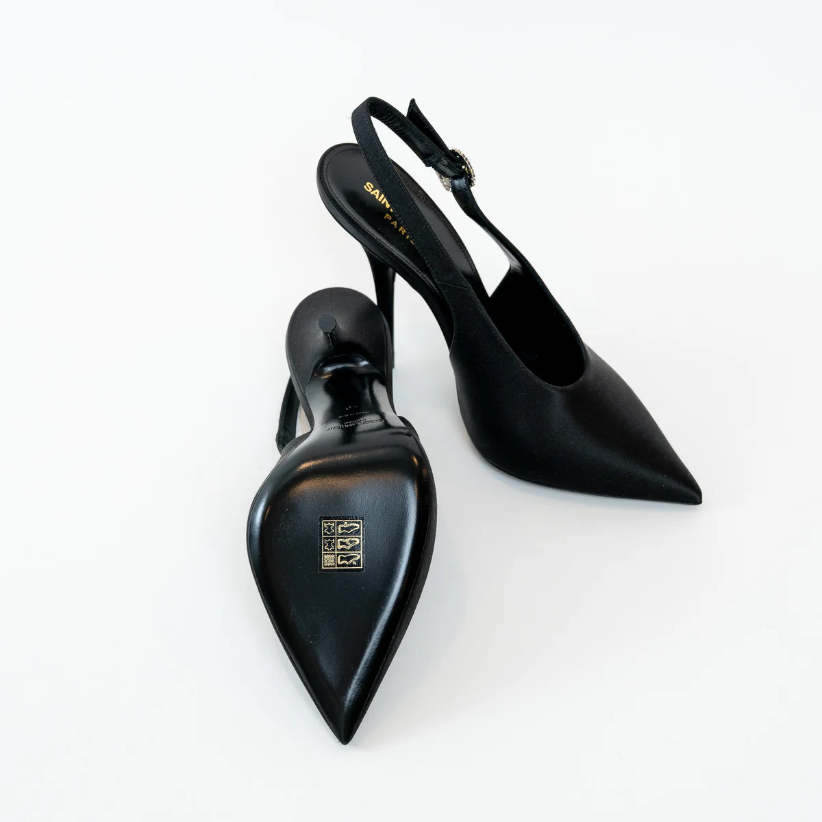 Saint Laurent Black Satin Slingback Pumps Size 40