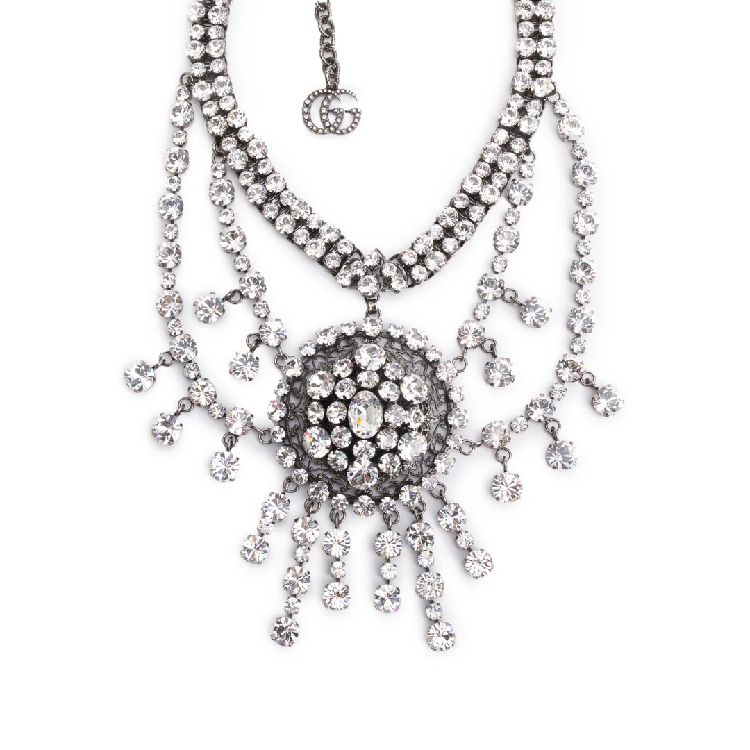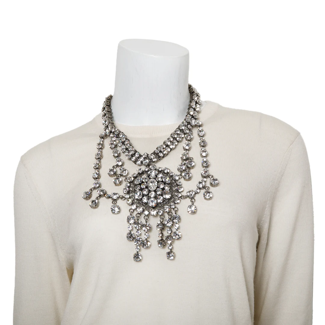 Silver-Plated Crystal Statement Necklace