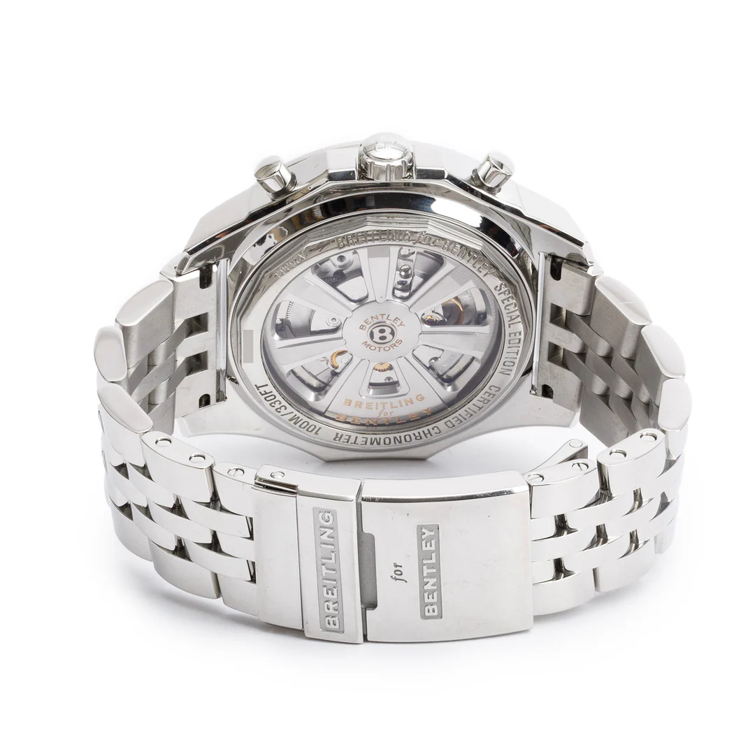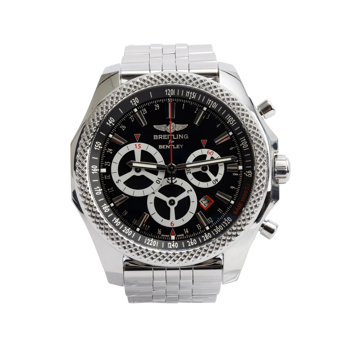 Stainless Steel Bentley Barnato 49 MM Automatic Chronograph Black Dial Watch A25366 w/ Box & Papers