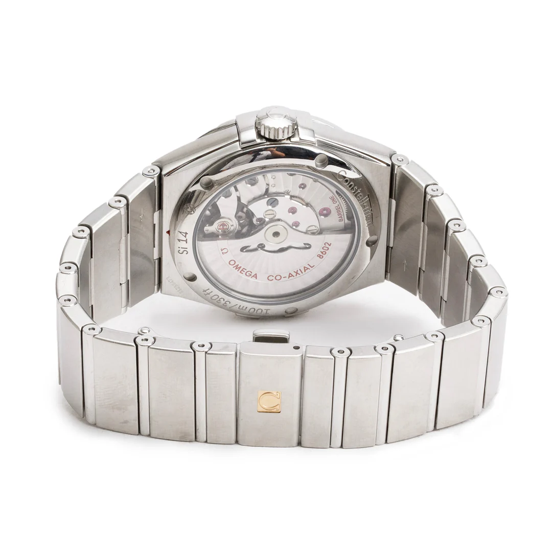 Stainless Steel Constellation Day-Date 38 MM Co-Axial Chronometer Automatic Watch Black Dial w/ Box & Papers