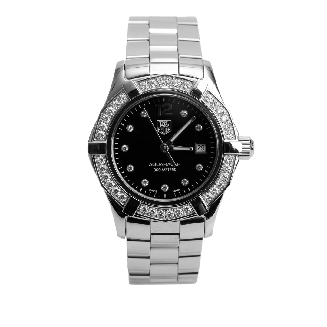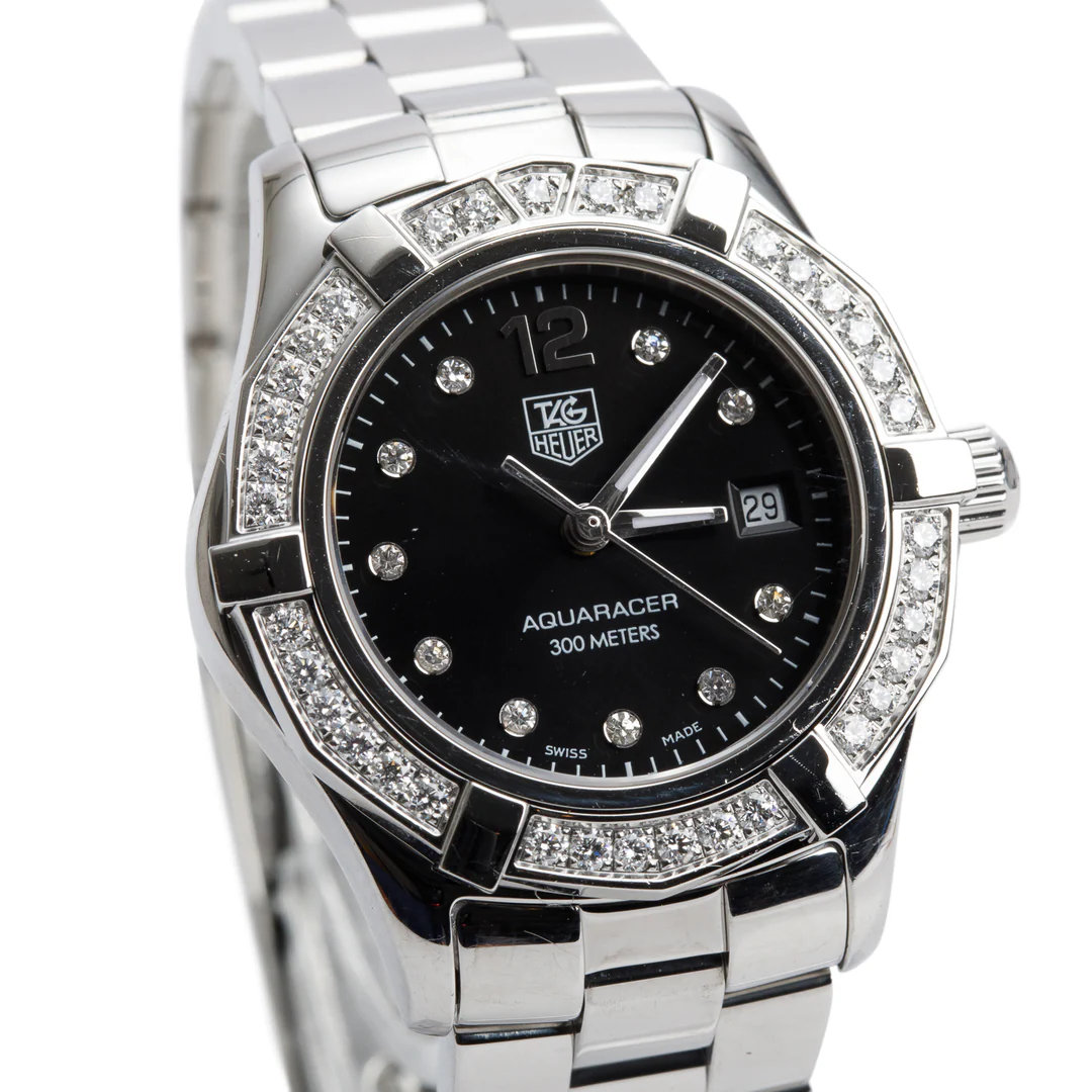 Stainless Steel Diamond Bezel Aquaracer 27 MM Quartz Watch Black Diamond Dial WAF141D w/ Box & Papers