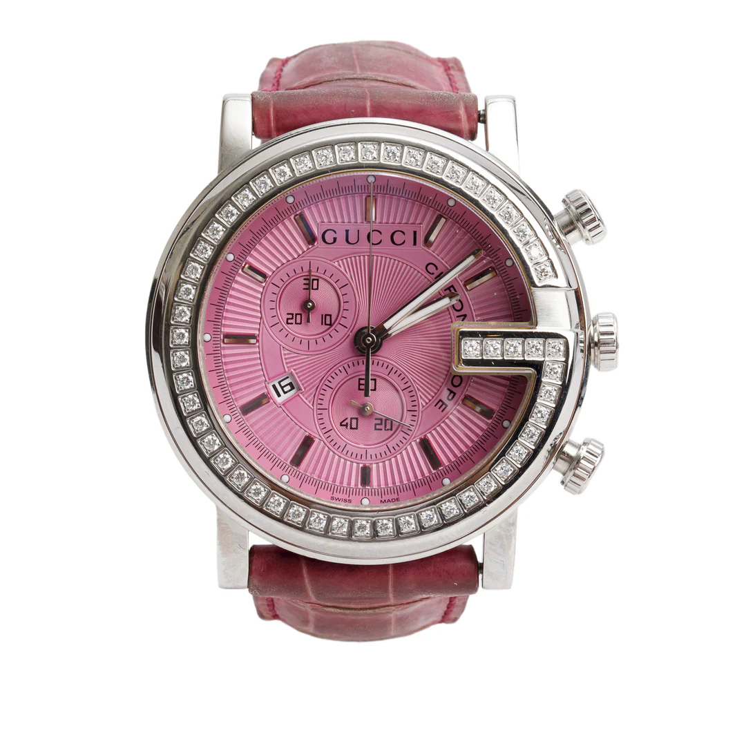 Stainless Steel Diamond Bezel G-Chrono 44 MM Chronograph Quartz Watch Pink Dial w/ Box & Papers