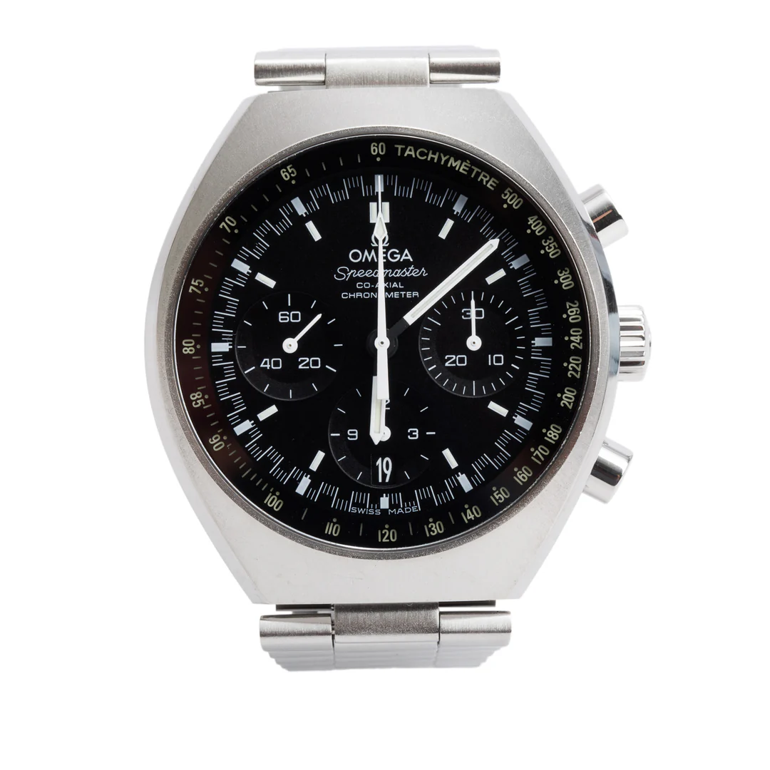 Stainless Steel Speedmaster Mark II 42.4 MM Co-Axial Chronometer Automatic Watch Black Dial w/ Box & Papers