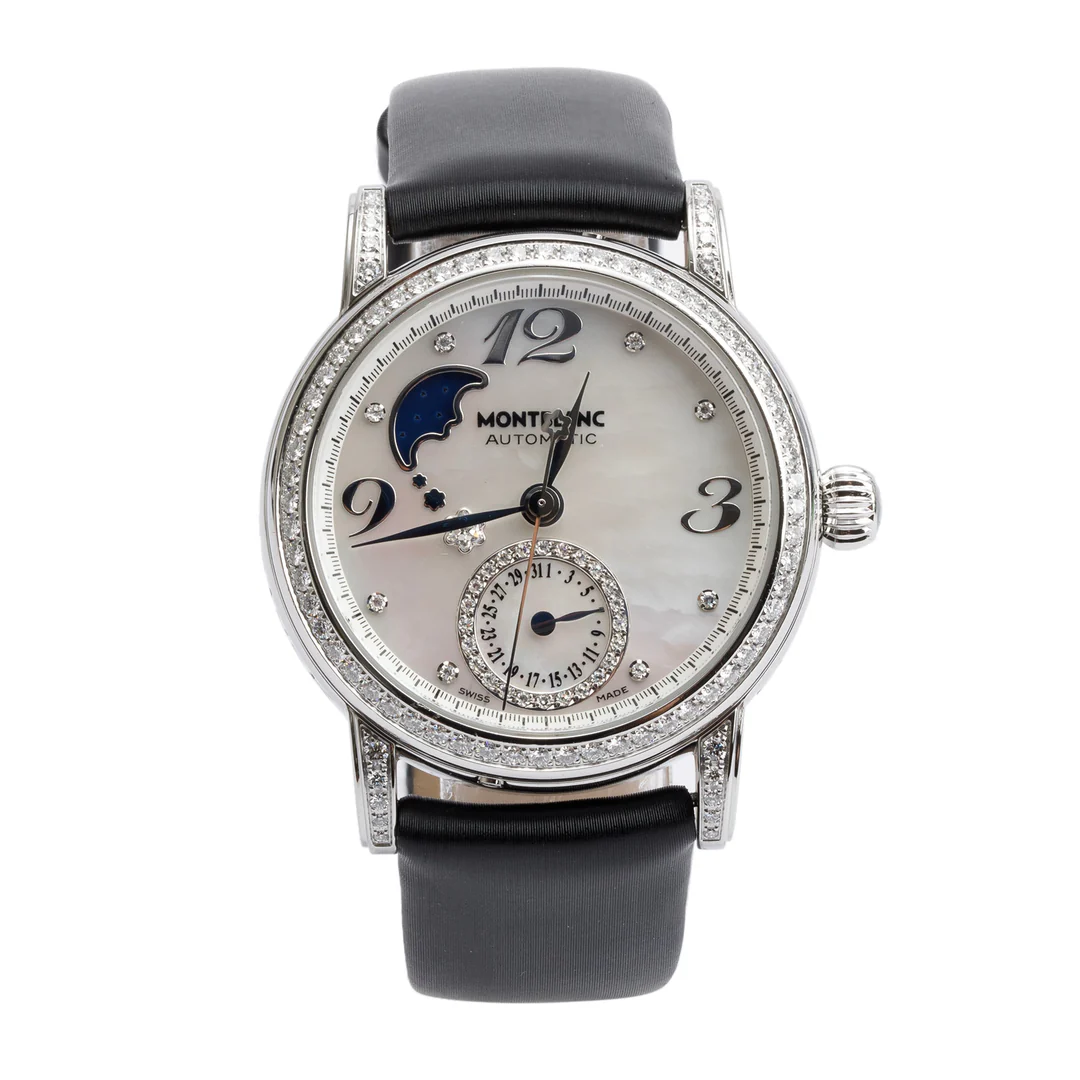 Stainless Steel Star Diamond Bezel Mother of Pearl Diamond Dial 36 MM Automatic Moonphase Watch 7109