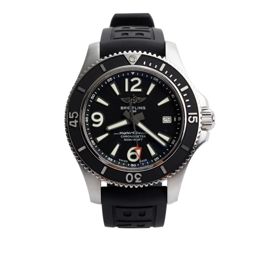 Stainless Steel Superocean 42 MM Automatic Watch Black Dial A17366 w/ Box & Papers