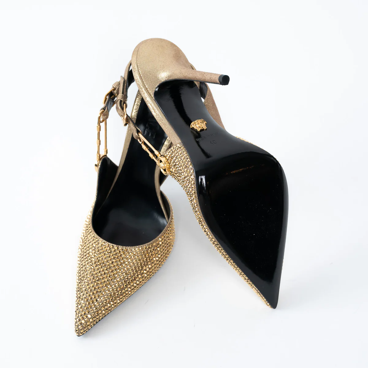 Versace Gold Crystal Embellished Slingback Pumps Size 40