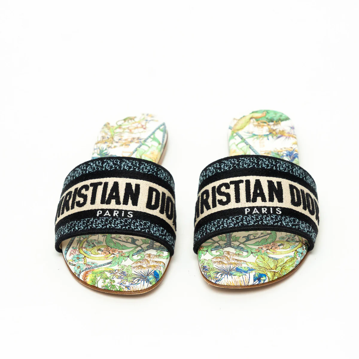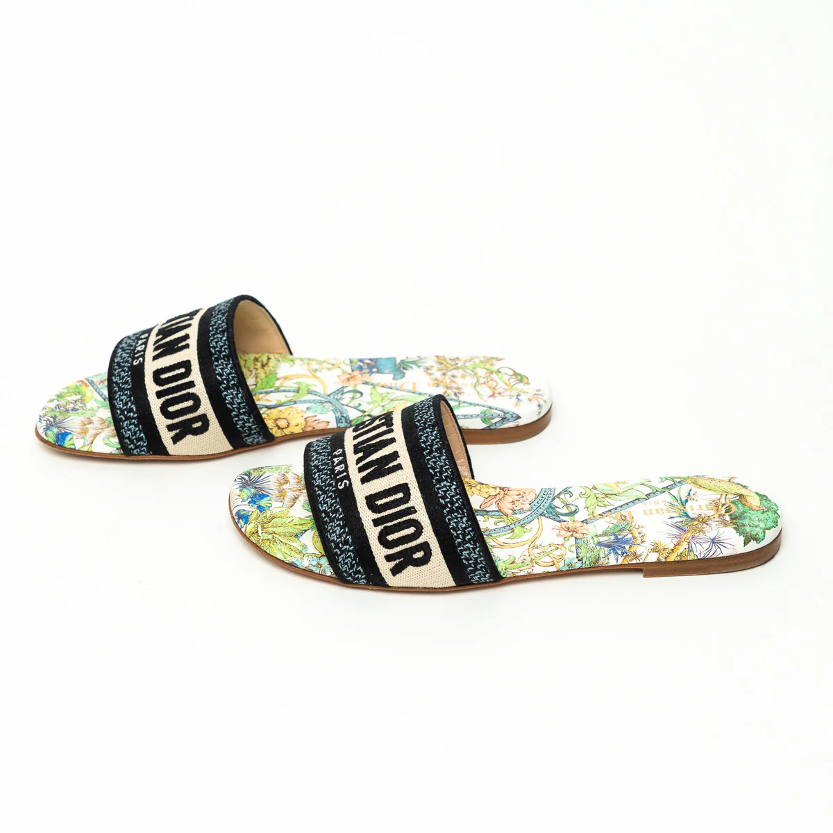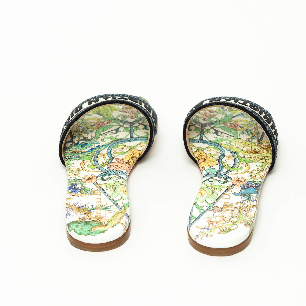 - Features: Embroidered logo, Leather insole, Floral print on insole, Open toe, Round toe
