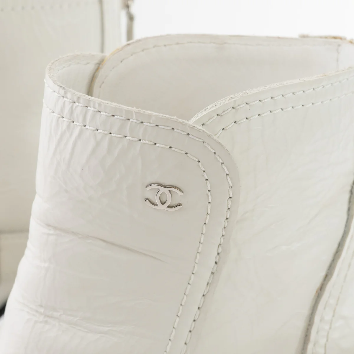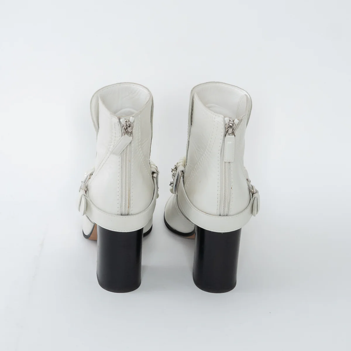 White Leather Faux Pearl Boots Size 38.5