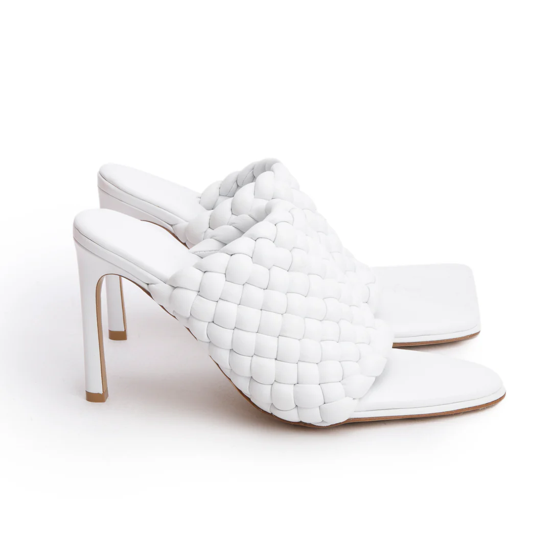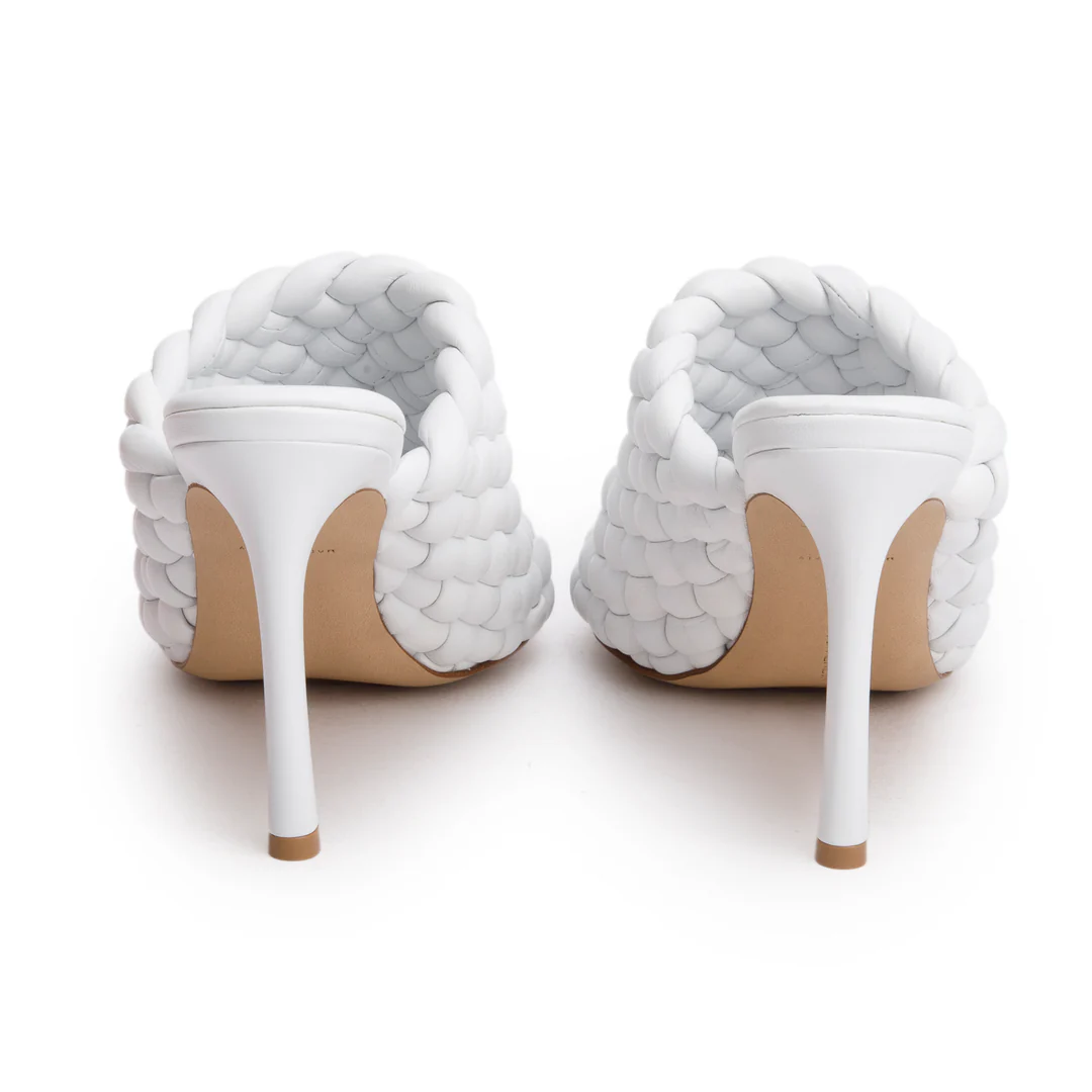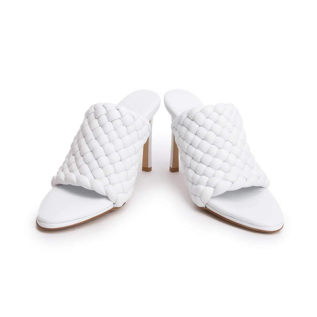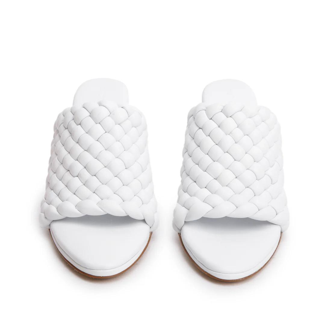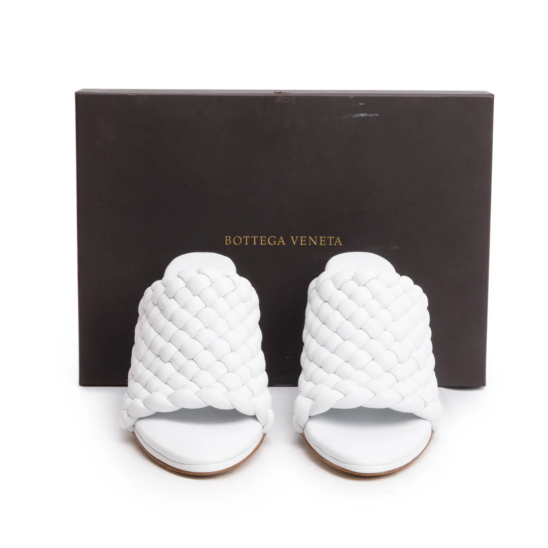 White Nappa Leather Padded Intreccio The Curve Mule Sandals, Size 38 w/ Box