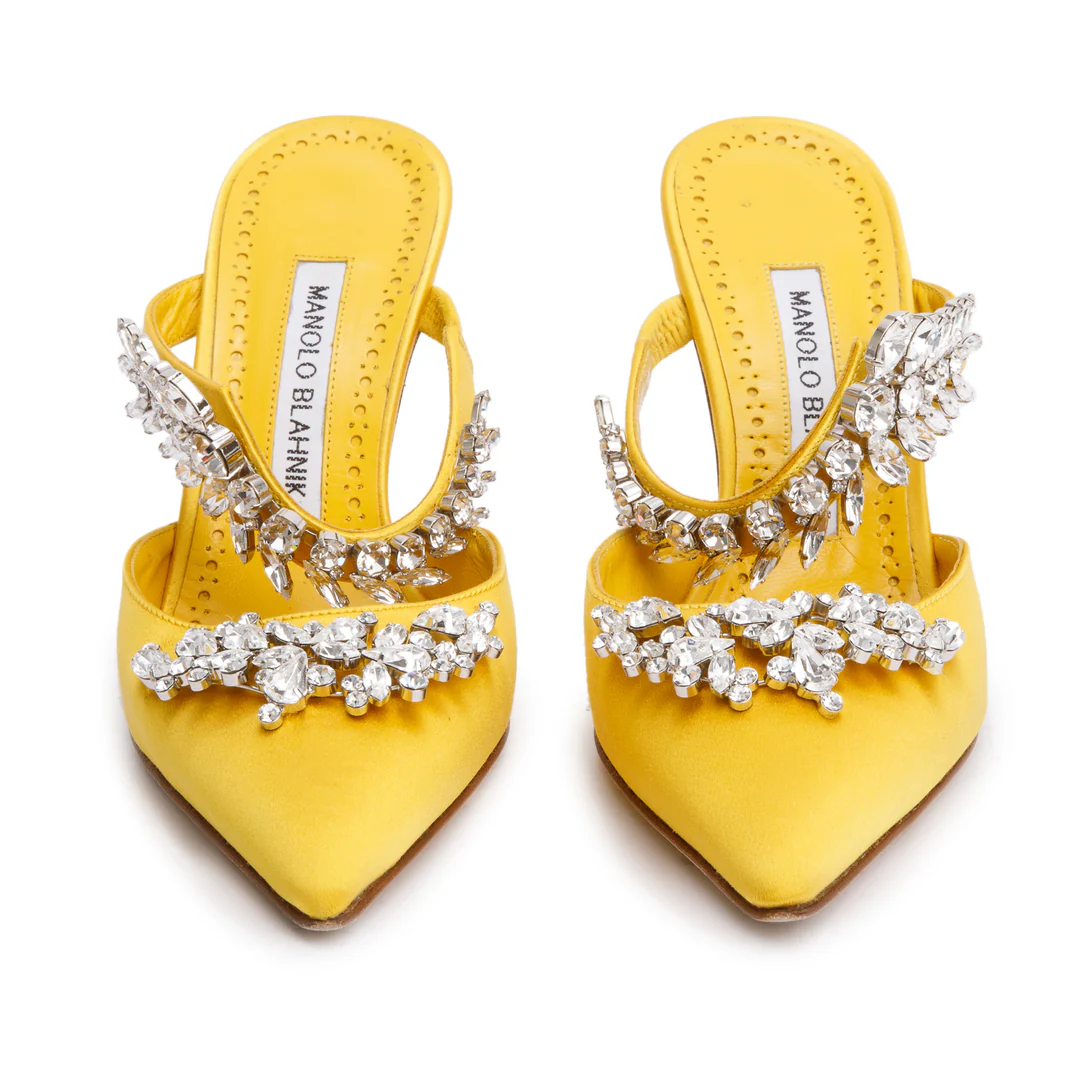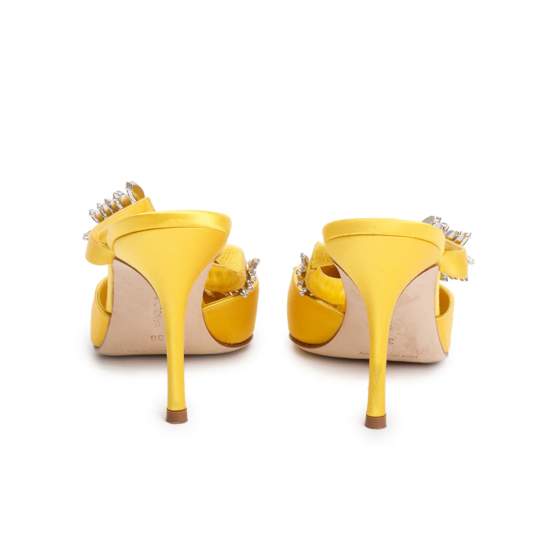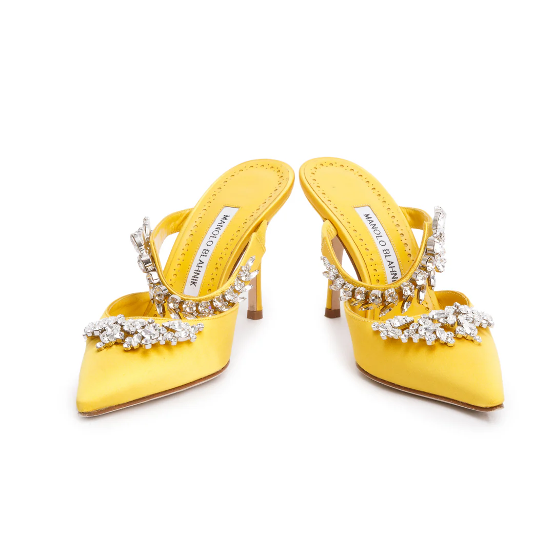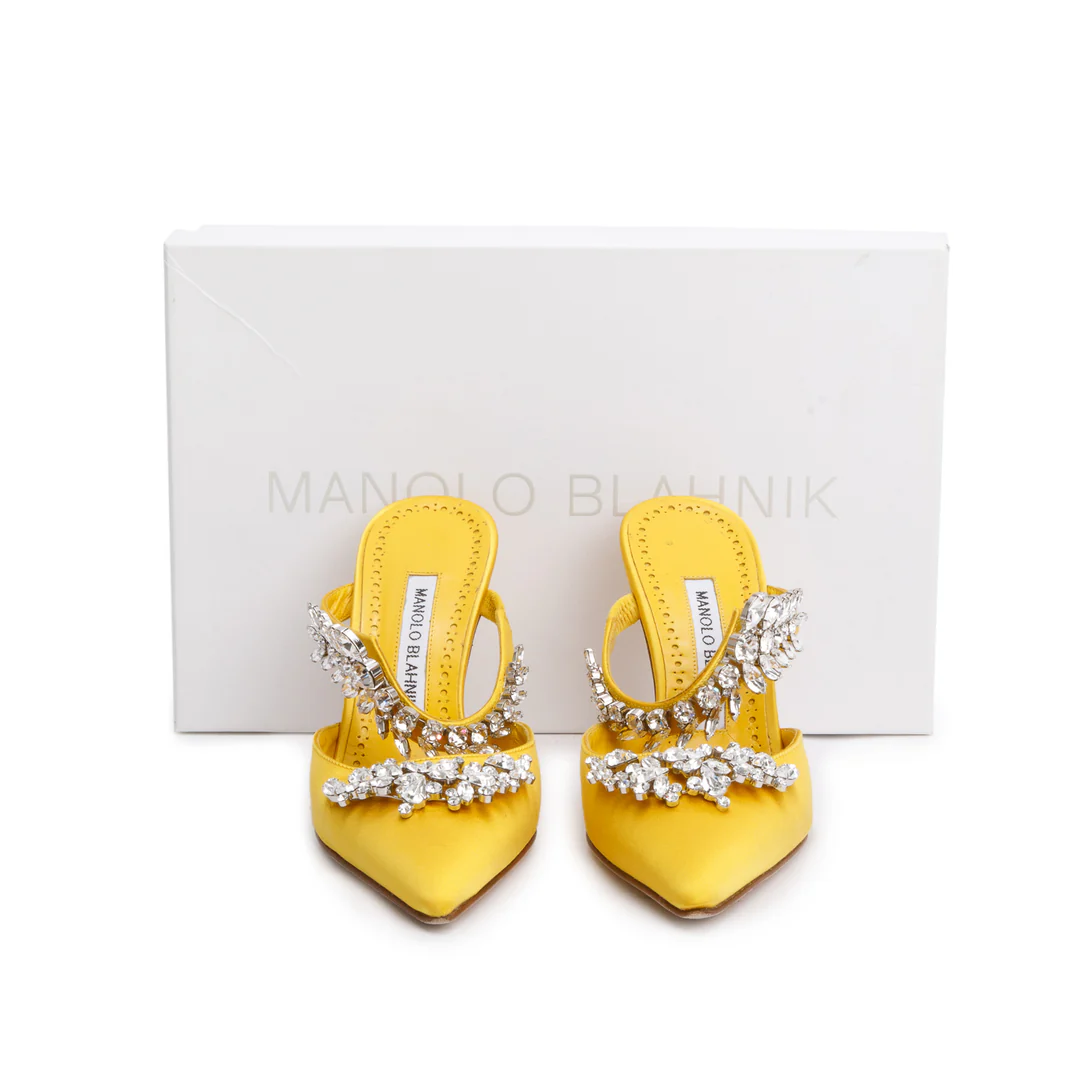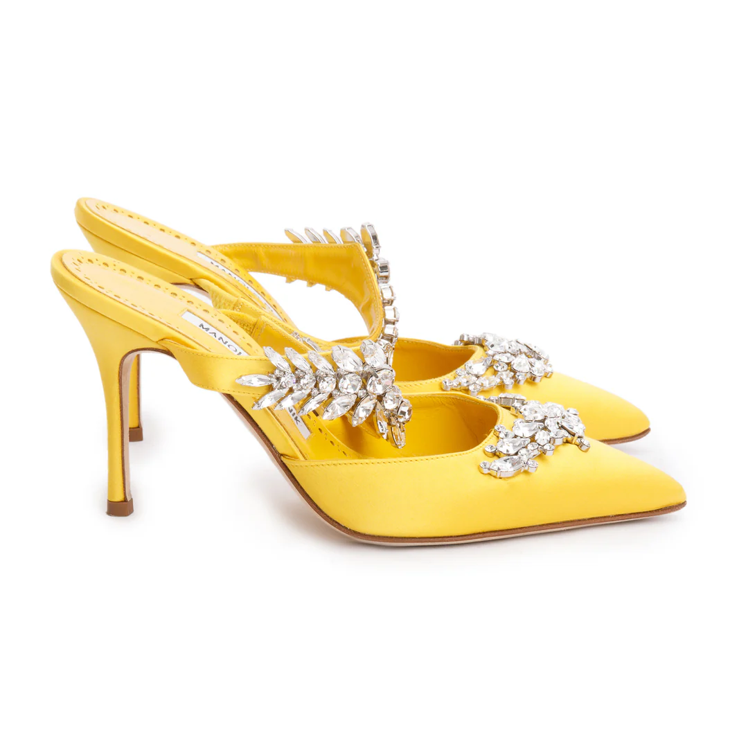 Yellow Satin Crystal Embellised Lurum Pumps, Size 36 w/ Box